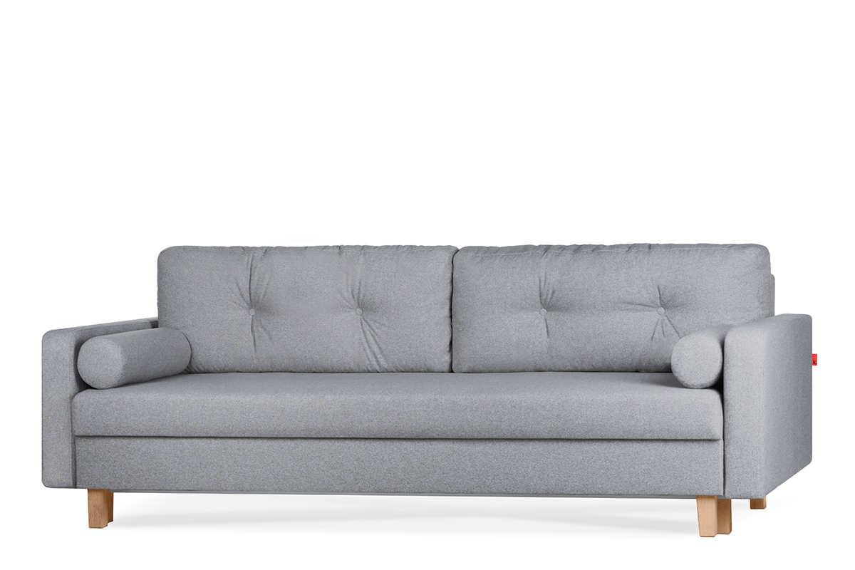 Kolekcja mebli w stylu skandynawskim ERISO łączy w sobie minimalizm, prostotę i funkcjonalność. Sofa posiada wygodny typ rozkładania DL oraz powierzchnię spania 150x200 cm. Kolekcja ERISO wyróżnia się wyjątkowym designem. Ozdobne pikowania i okrągłe poduchy podkreślają jej wyjątkowy, skandynawski charakter. Drewniane nóżki nadają sofie lekkości i uwydatniają jej indywidualny, niepowtarzalny wygląd. ERISO to wygodne, komfortowe sofy. Podczas jej projektowania czerpaliśmy inspiracje z najnowszych skandynawskich trendów. Nowoczesna stylistyka sofy w stylu skandynawskim sprawdzi się w każdym wnętrzu. Sofa w kolorze szarym, miętowym, żółtym i beżowym ożywią jasne i surowe skandynawskie wnętrza. Połączenie stonowanej kolorystyki z kolorowymi sofami o tradycyjnie-nowoczesnym wyglądzie zaakcentuje i podkreśli skandynawski charakter każdej aranżacji.