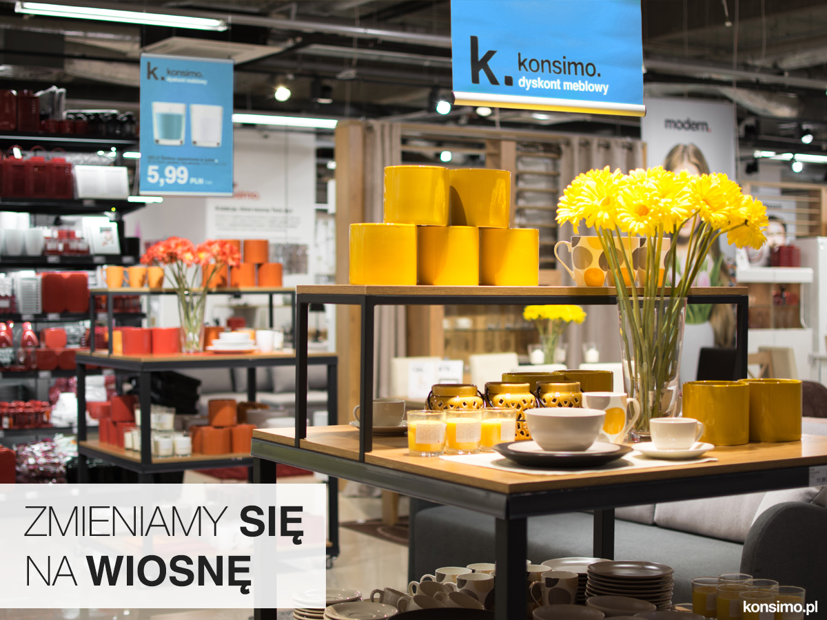 Wiosna zbliża się wielkimi krokami. Jest to wyjątkowy czas, ponieważ wszystko wokół budzi się do życia i nabiera koloru. Właśnie dlatego warto zadbać o to, by wiosna zawitała również do naszego wnętrza. W salonie meblowym Konsimo. również zmieniamy się na wiosnę! Wszystko zaczęło się od zmiany wystroju naszych sklepów stacjonarnych. Zmieniliśmy układ produktów, by całości dodać wiosennej energii. Dodatkowo cały czas ciężko pracujemy nad nowościami, które chcemy jak najszybciej wprowadzić do asortymentu. Nowości są niesamowicie atrakcyjne, nie tylko wizualnie, ale tez cenowo.