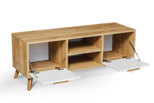 SKADI, https://dev1-mda.konsimo.pl/kolekcja/skadi/ Szafka RTV dąb/biały - zdjęcie