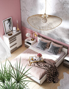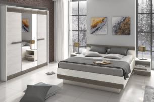 SARPA, https://dev1-mda.konsimo.pl/kolekcja/sarpa/ Łóżko ze stelażem biały/brązowy - zdjęcie