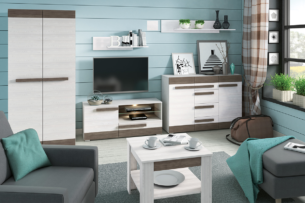 SARPA, https://dev1-mda.konsimo.pl/kolekcja/sarpa/ Szafka RTV biały/brązowy - zdjęcie