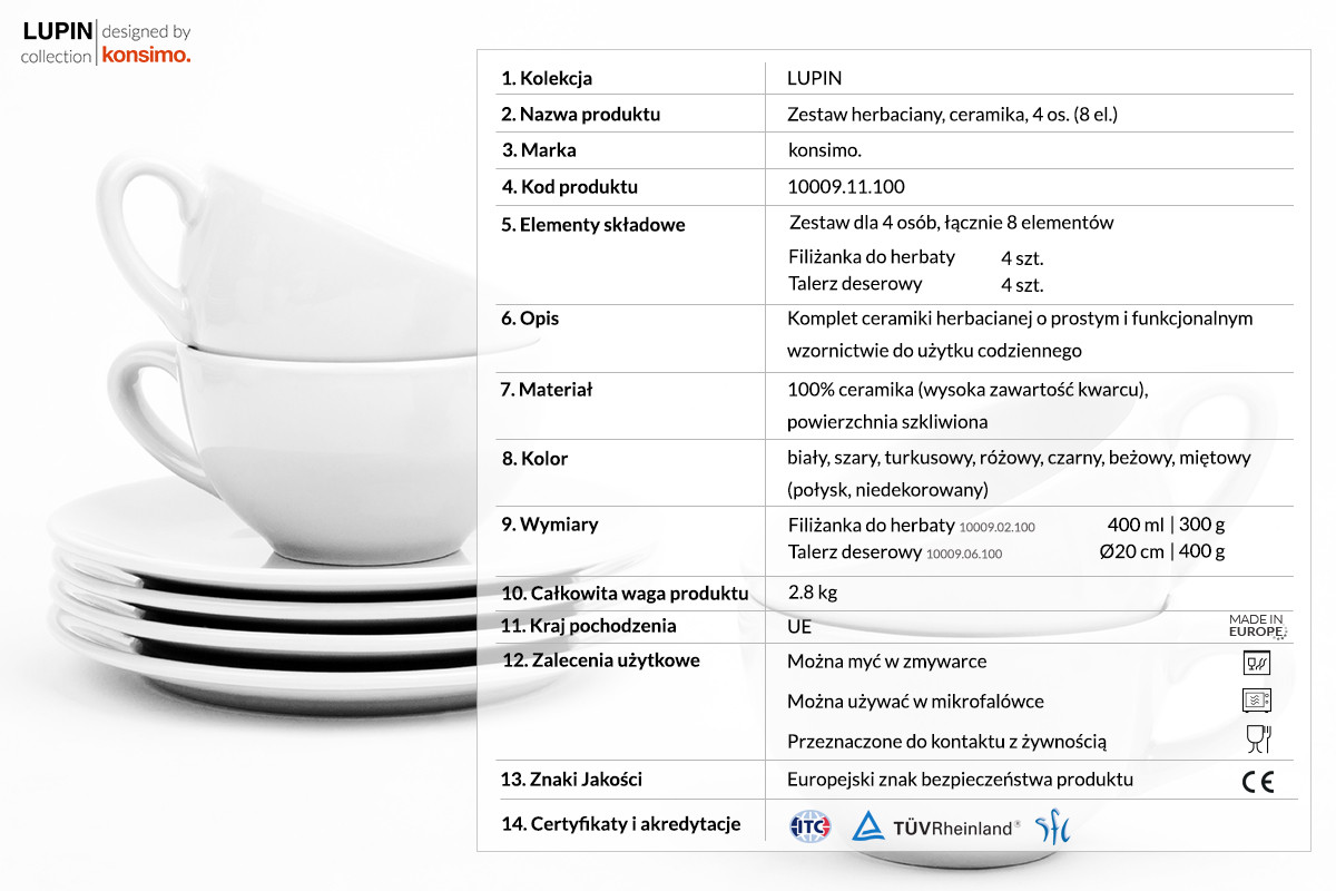 LUPIN zobacz całą kolekcję Zestaw herbaciany, 4 os. (8 el) - kolor biały