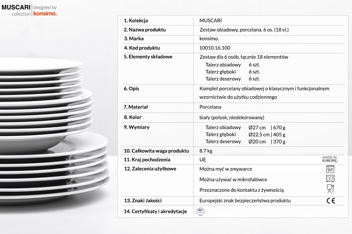 Wspólny domowy posiłek, od zawsze jest elementem łączącym pokolenia i rodzinę. Daje on okazję do rozmowy i spędzenia paru wspólnych chwil, pomiędzy codzienną gonitwą. Nieodzownym elementem każdego udanego posiłku jest zastawa, na jakiej jest on podany. Konsimo wraz z zestawem MUSCARI wychodzi na przeciw, wszystkim osobą ceniącym dobre chwile przy rodzinnym stole.