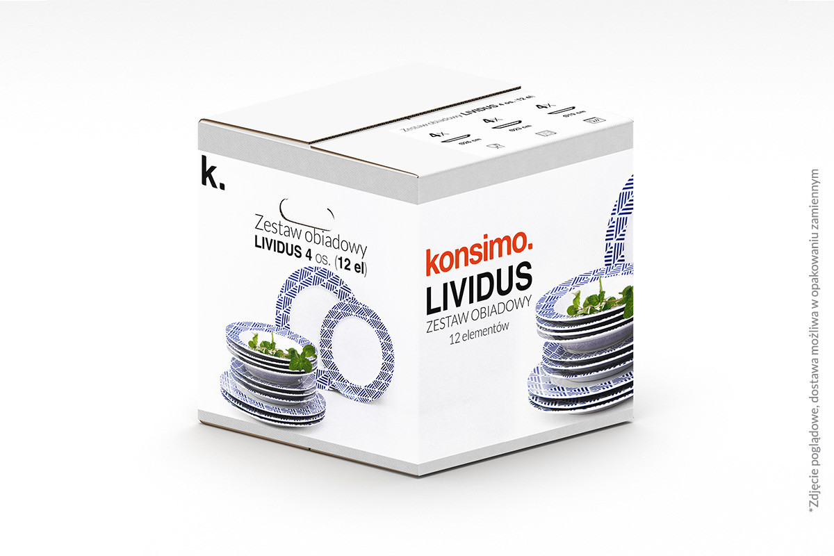 LIVIDUS zobacz całą kolekcję Zestaw obiadowy, 4 os. (12 el) - kolor biały/niebieski