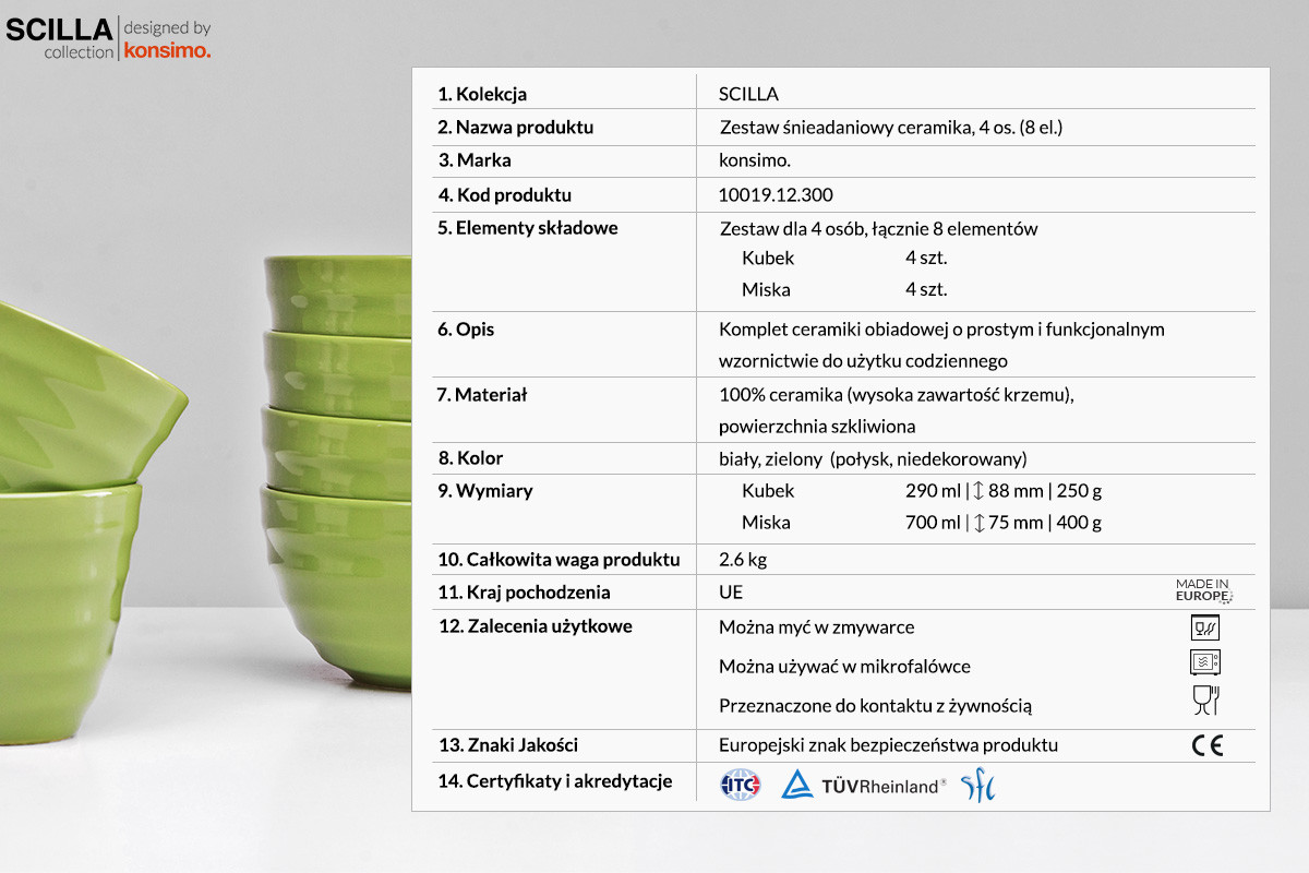 SCILLA zobacz całą kolekcję Zestaw śniadaniowy, 4 os. (8 el) - kolor zielony