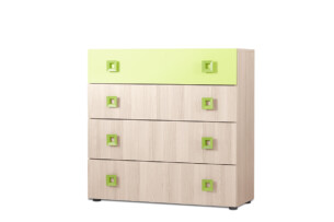 Nowoczesna dziecięca komoda Finko, to praktyczny i funkcjonalny mebel, który znajdzie swoje zastosowanie w każdym pokoju dziecięcym. Drewnopodobny laminat w kolorze jesionu i zieleni, prosta konstrukcja oraz geometryczne uchwyty podkreślają modny styl komody. Pojemne szuflady pomieszczą dużo ubrań oraz inne dziecięce akcesoria. Oryginalna stylizacja komody sprawia, że będzie ona piękną ozdobą młodzieżowego czy dziecięcego pokoju.