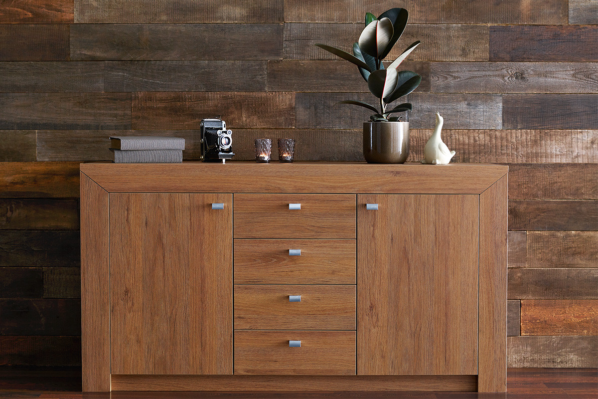 Szuflady samodociągające ze spowalniaczem i opcją cichego domyku pracują gładko i bezgłośnie, podobnie jak zawiasy drzwiczek ze spowalniaczem i prowadnikiem Clip On. Wysokiej klasy drewnopodobny laminat chroni powierzchnię tej nowoczesnej komody przed ścieraniem i uszkodzeniami. To znakomite rozwiązanie do sypialni, salonu, pokoju dziennego czy pokoju nastolatka. Tę stylową szafkę cenią także właściciele hoteli, akademików i innych obiektów noclegowych.