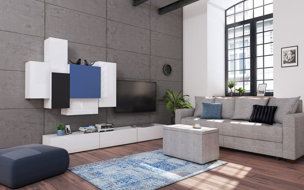 SCAVO zobacz całą kolekcję Meblościanka - kolor biały/biały połysk/niebieski połysk/czarny połysk