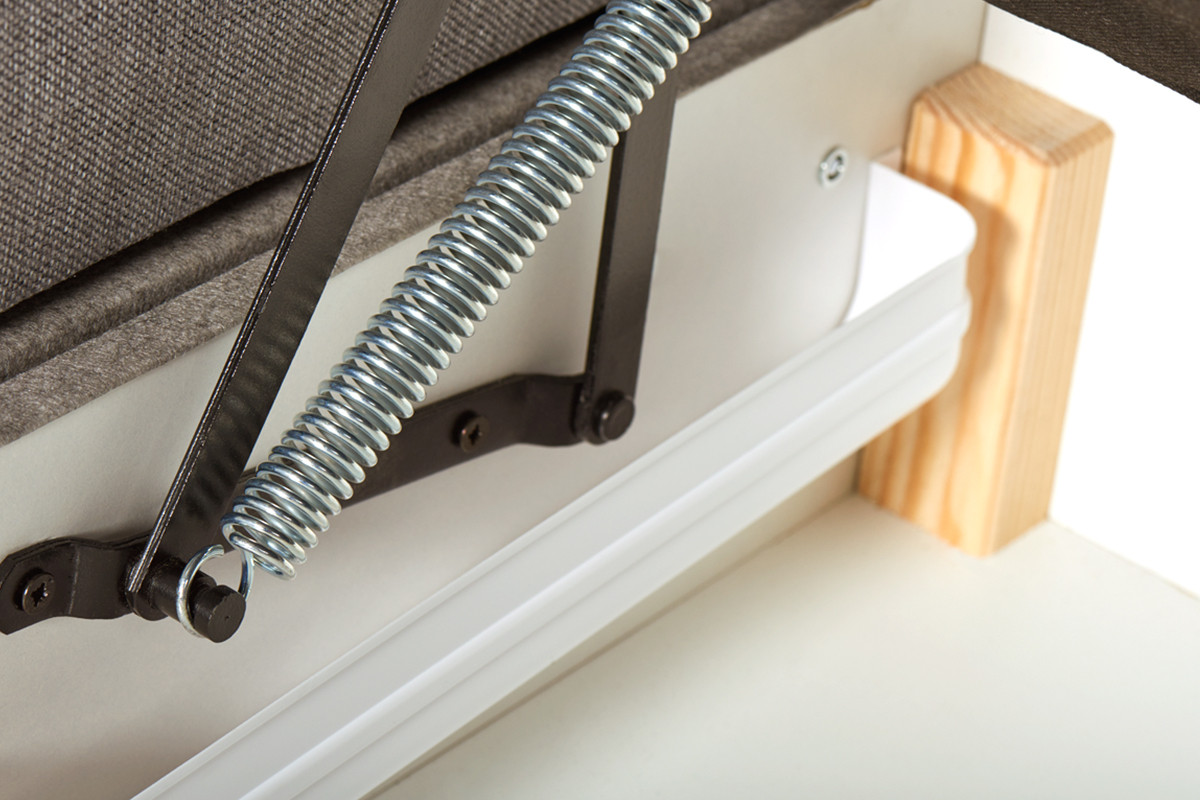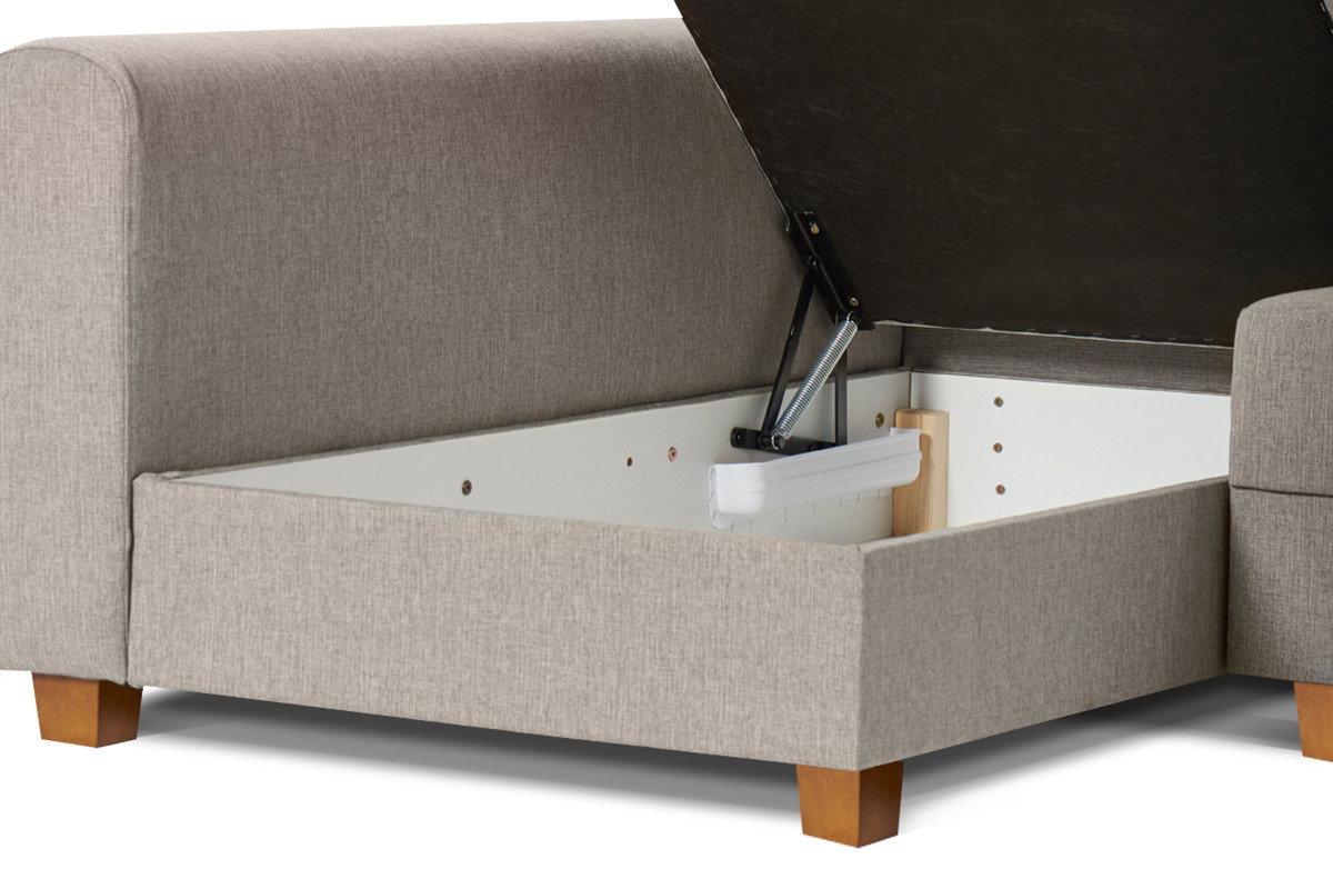 • Skrzynia: płyta pilśniowa 3,2mm, wnętrze płyta wiórowa 16mm biała, zewnętrzna część skrzyni otapicerowana tkaniną techniczną