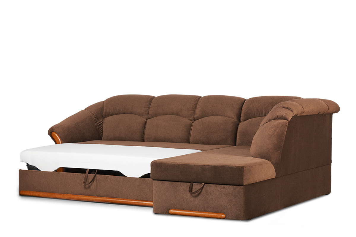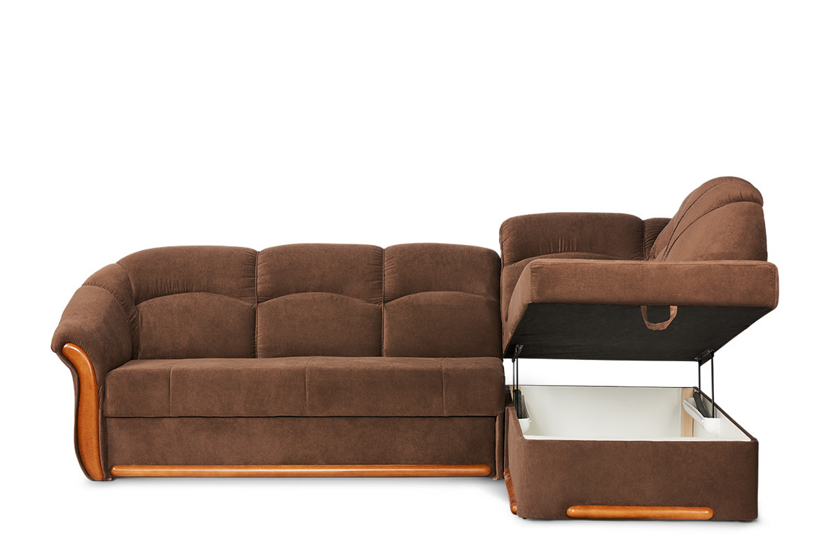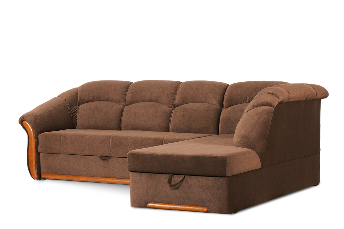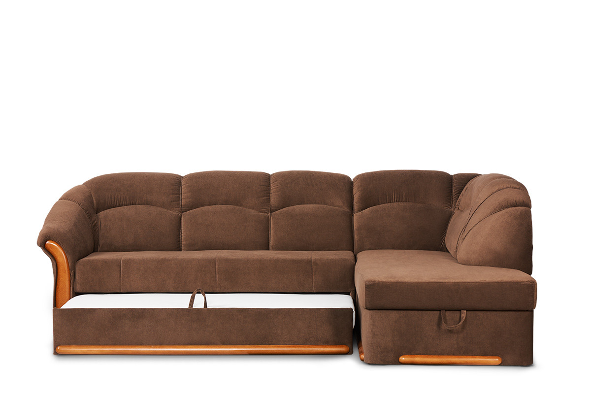 Klasyczny narożnik prawy z kolekcji tradycyjnych mebli IMERO to wygodna kanapa dla całej rodziny, a nocą – łóżko dla gości lub domowników. Przestronne miejsce do spania, duży pojemnik na pościel, a także praktyczny mechanizm funkcji spania typu delfin sprawiają, iż codzienność staje się prawdziwą przyjemnością. Ten stylowy narożnik wyróżnia się nie tylko solidną, wytrzymałą konstrukcją i precyzją wykonania, ale też doskonałą wygodą.