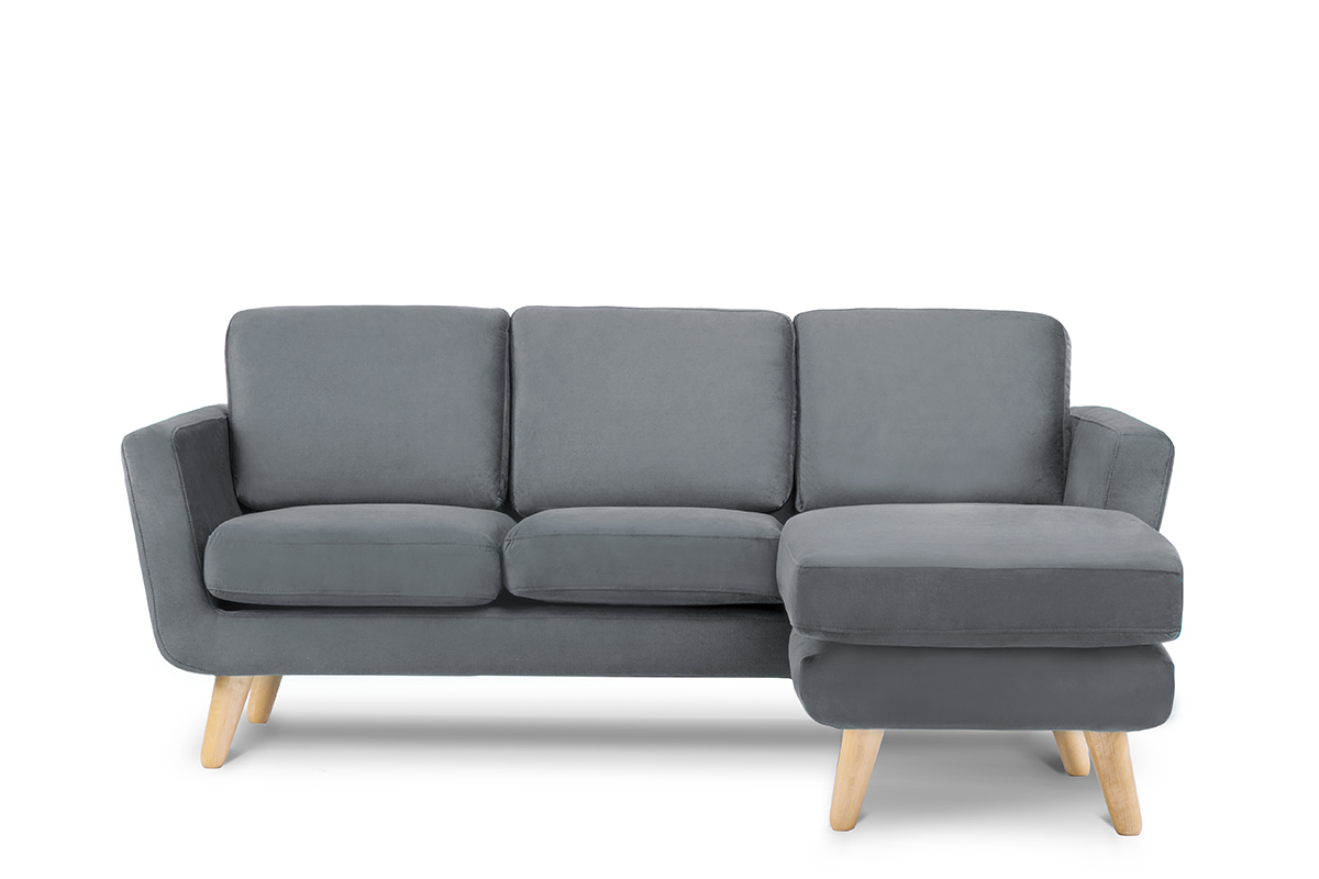 TAGIO zobacz całą kolekcję Szary skandynawski narożnik z pufą / otomaną prawy - kolor szary