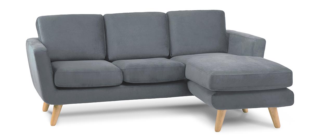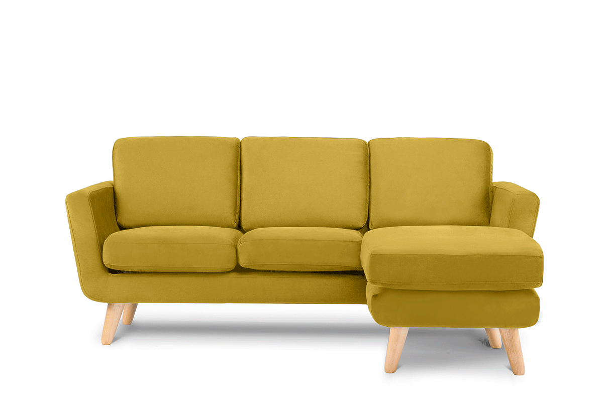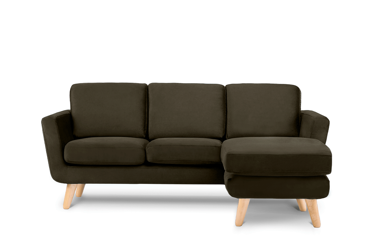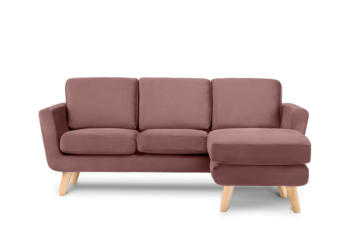 Każda poduszka ma ukryty suwak, dzięki któremu pokrowiec można szybko zdjąć i łatwo uprać. Konstrukcję tego modnego skandynawskiego narożnika z otomaną po prawej stronie wspierają mocne nóżki z litego drewna – dzięki nim kanapa jest wyjątkowo stabilna i bezpieczna. Świetnie sprawdzi się w przestrzeni domowej, restauracyjnej, hotelowej i biurowej.