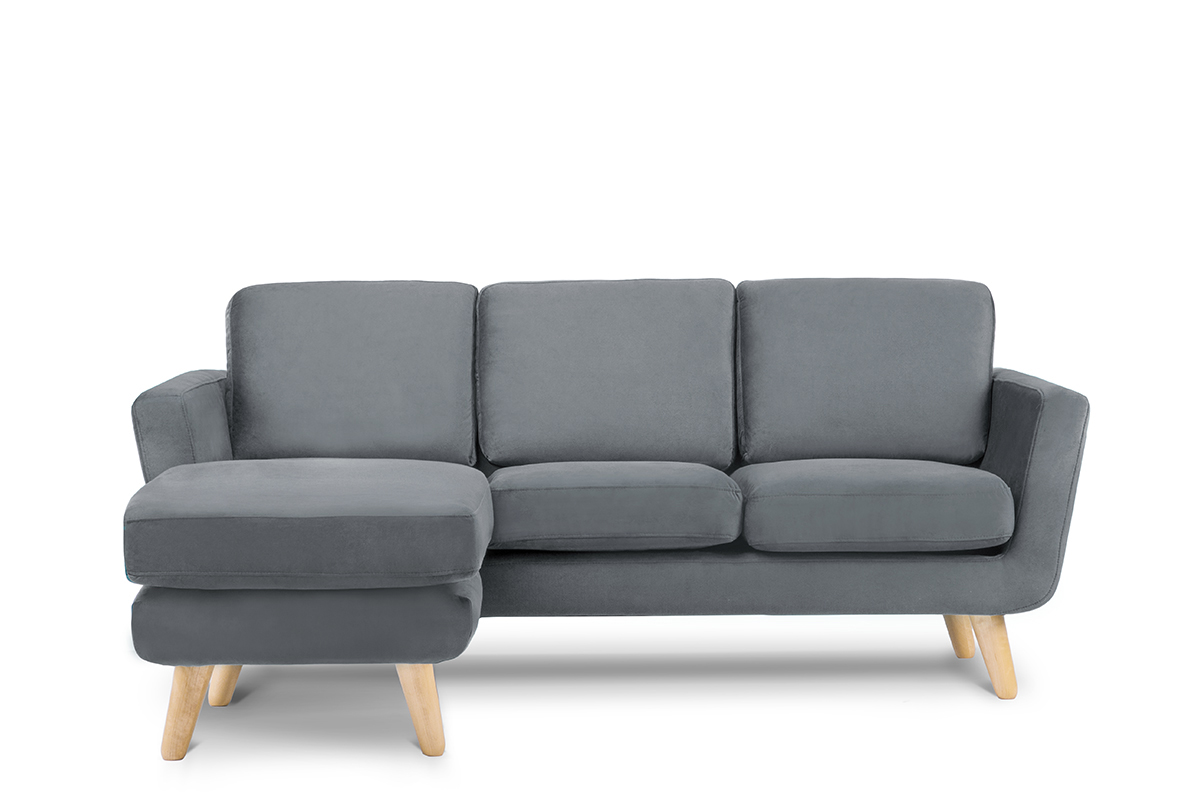 Solidny, wykonany z trwałych materiałów najwyższej jakości. Do tego niezwykle komfortowy, wygodny i ergonomiczny – taki właśnie jest skandynawski narożnik z otomaną po stronie lewej z kolekcji TAGIO. Wyjątkowo przyjemna w dotyku tapicerka wykonana została z wytrzymałej tkaniny plecionej. Dzięki ukrytym suwakom kanapa jest łatwa do utrzymania w czystości – pokrowce poduszek można po prostu zdjąć i uprać.