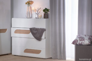 Meble skandynawskie wyróżniają się nie tylko estetycznym designem, ale też wyjątkową funkcjonalnością. O obie te cechy zadbali projektanci regału FRISK – niezwykle pojemnego, wyposażonego w mocne półki, z powodzeniem znoszące nawet duży ciężar. Skandynawski regał wykonany został z grubej płyty laminowanej w kolorze naturalnego drewna lub bieli. Konstrukcję dodatkowo stabilizuje specjalne mocowanie tylnej ściany.