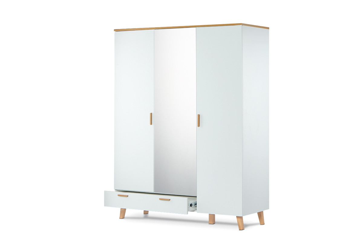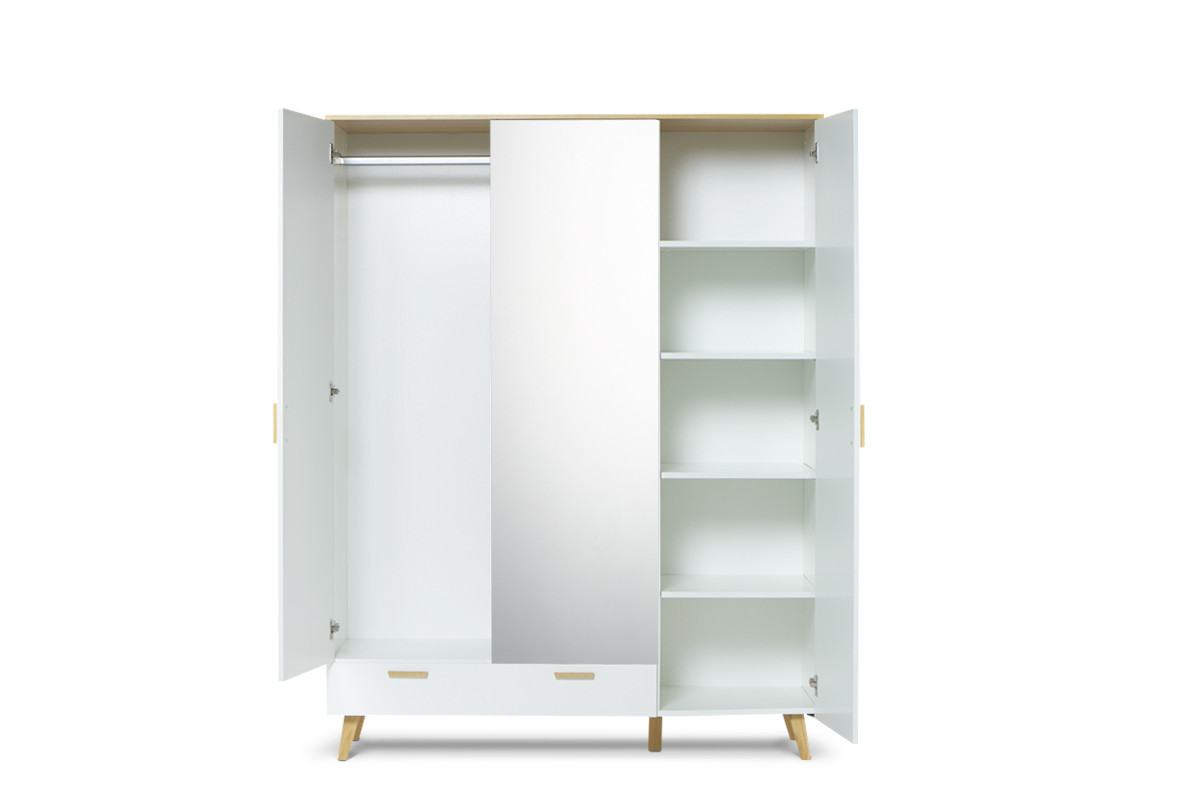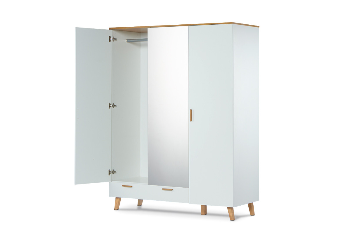 FRISK zobacz całą kolekcję Biała szafa z lustrem w stylu skandynawskim - kolor biały/dąb naturalny