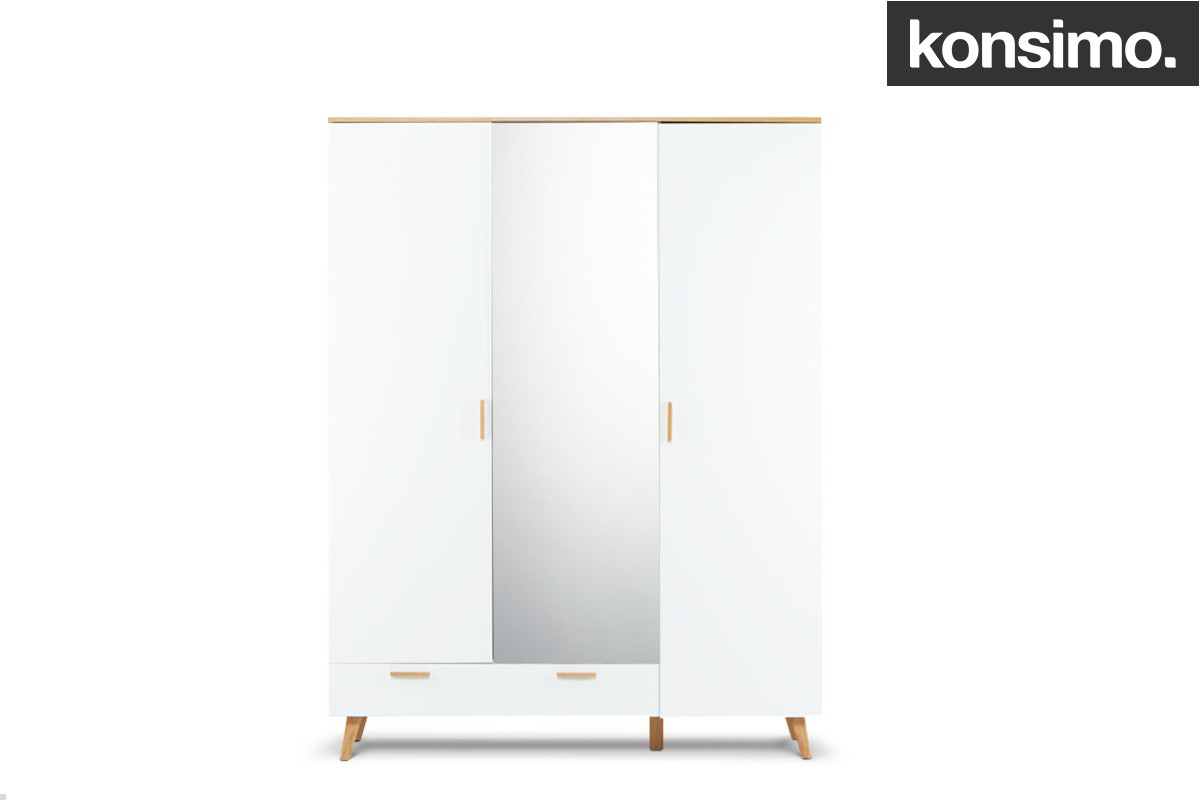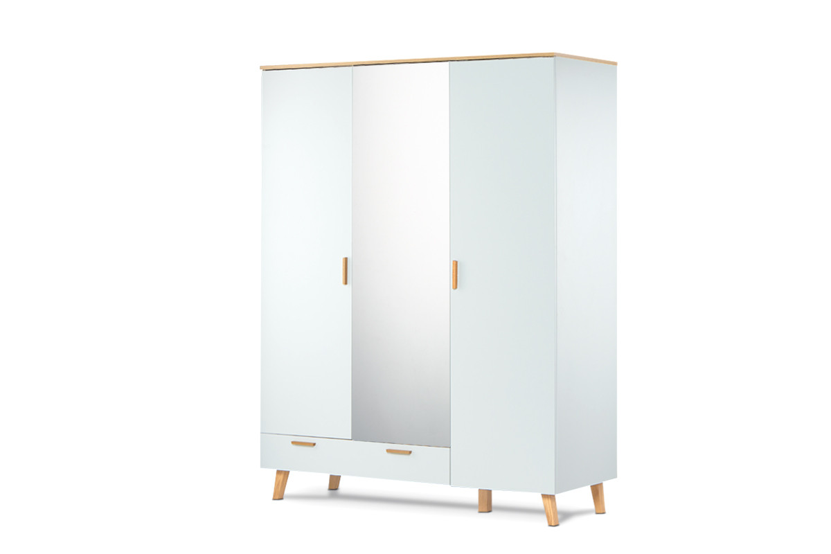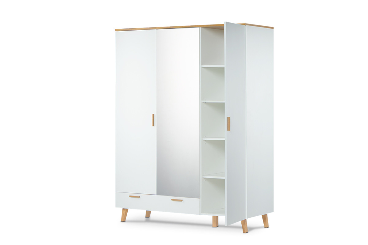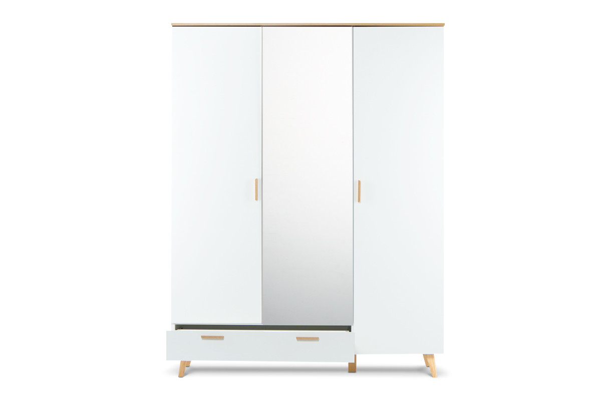 FRISK zobacz całą kolekcję Biała szafa z lustrem w stylu skandynawskim - kolor biały/dąb naturalny