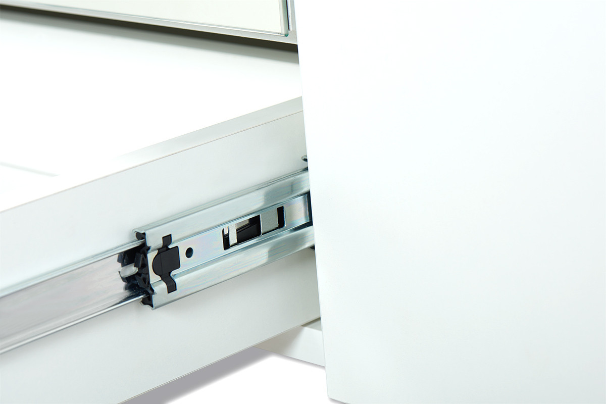 - Prowadnice: kulkowe hydrauliczne z pełnym wysuwem