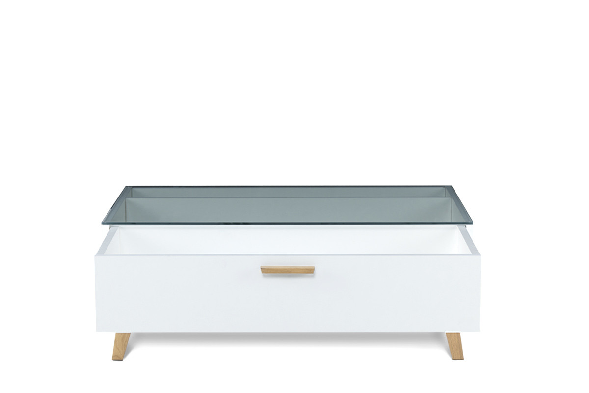 FRISK zobacz całą kolekcję Stolik kawowy skandynawski biały z szufladą - kolor biały/dąb naturalny