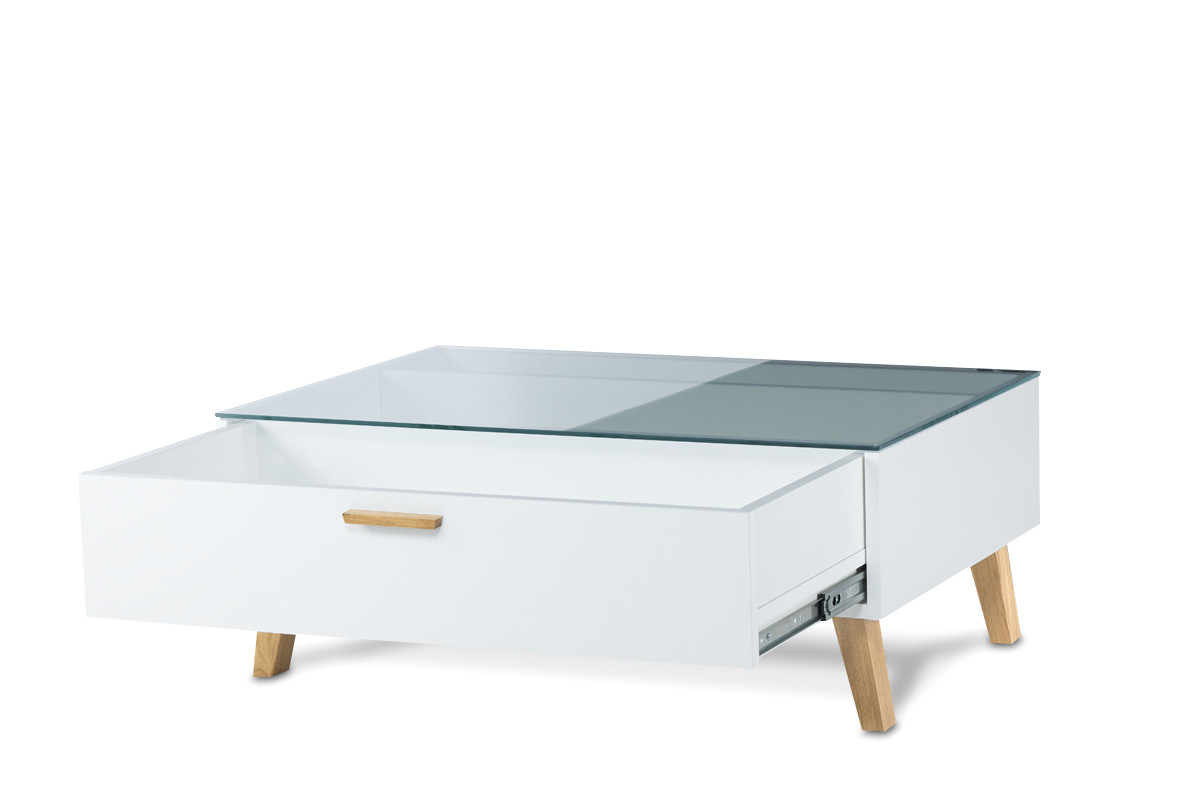 Stolik kawowy skandynawski biały z szufladą FRISK - kolor biały/dąb naturalny