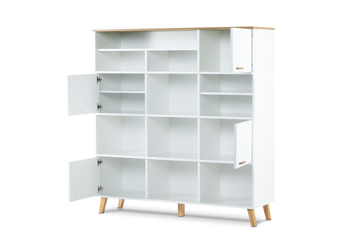 Dodatkowe wzmocnienie tylnej ścianki oraz solidne nóżki z litego drewna gwarantują doskonała stabilność konstrukcji. Wysokiej jakości biały laminat nie tylko chroni biały regał przed uszkodzeniem czy zarysowaniem, ale też ułatwia jego codzienne utrzymanie w czystości.