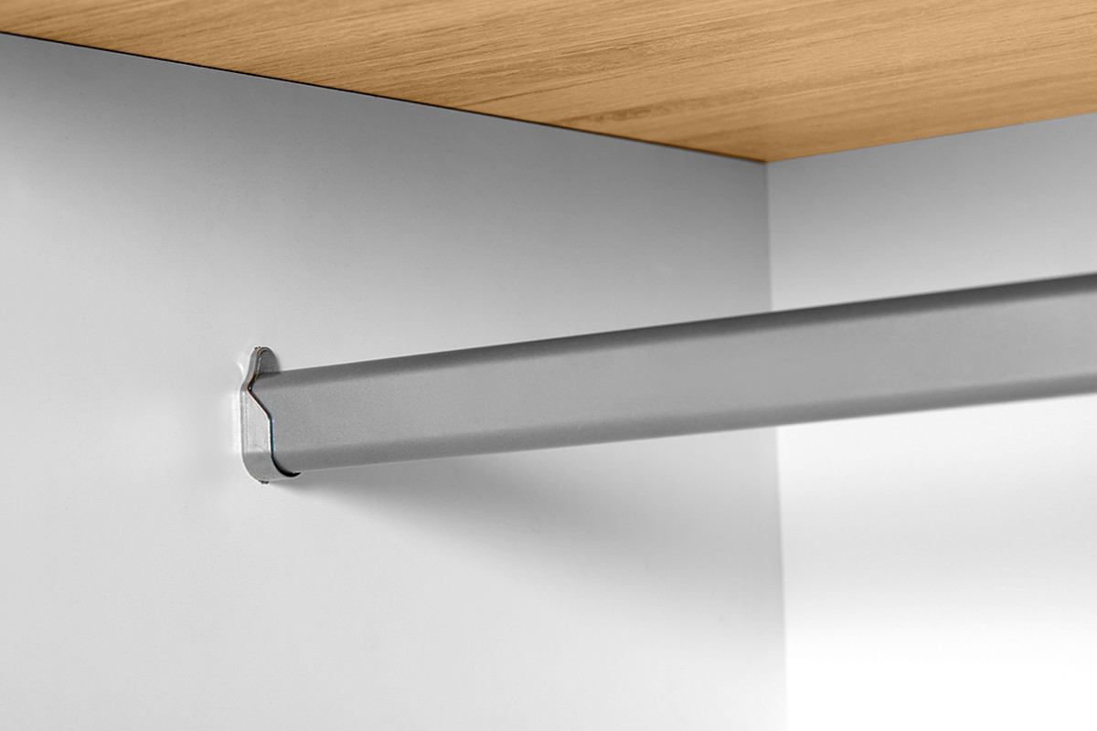 Szeroka i przestronna górna półka. Mocny drążek na wieszaki, a na dole – cicho i wygodnie wysuwana, pojemna szuflada. O to wszystko zadbali projektanci szafy ubraniowej ze skandynawskiej kolekcji FRISK. Wykonana została z bardzo wytrzymałej płyty pokrytej drewnopodobnym laminatem. Konstrukcję dodatkowo stabilizuje specjalne mocowanie tylnej ścianki. Niezawodną pracę szafy gwarantują wysokiej jakości zawiasy puszkowe, kulkowe hydrauliczne prowadnice szuflad, a także wygodne, mocne uchwyty.