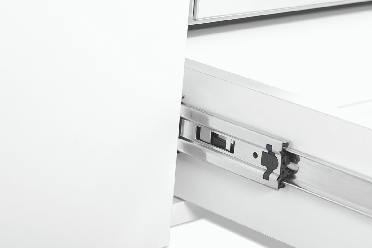 - Prowadnice: kulkowe hydrauliczne z pełnym wysuwem