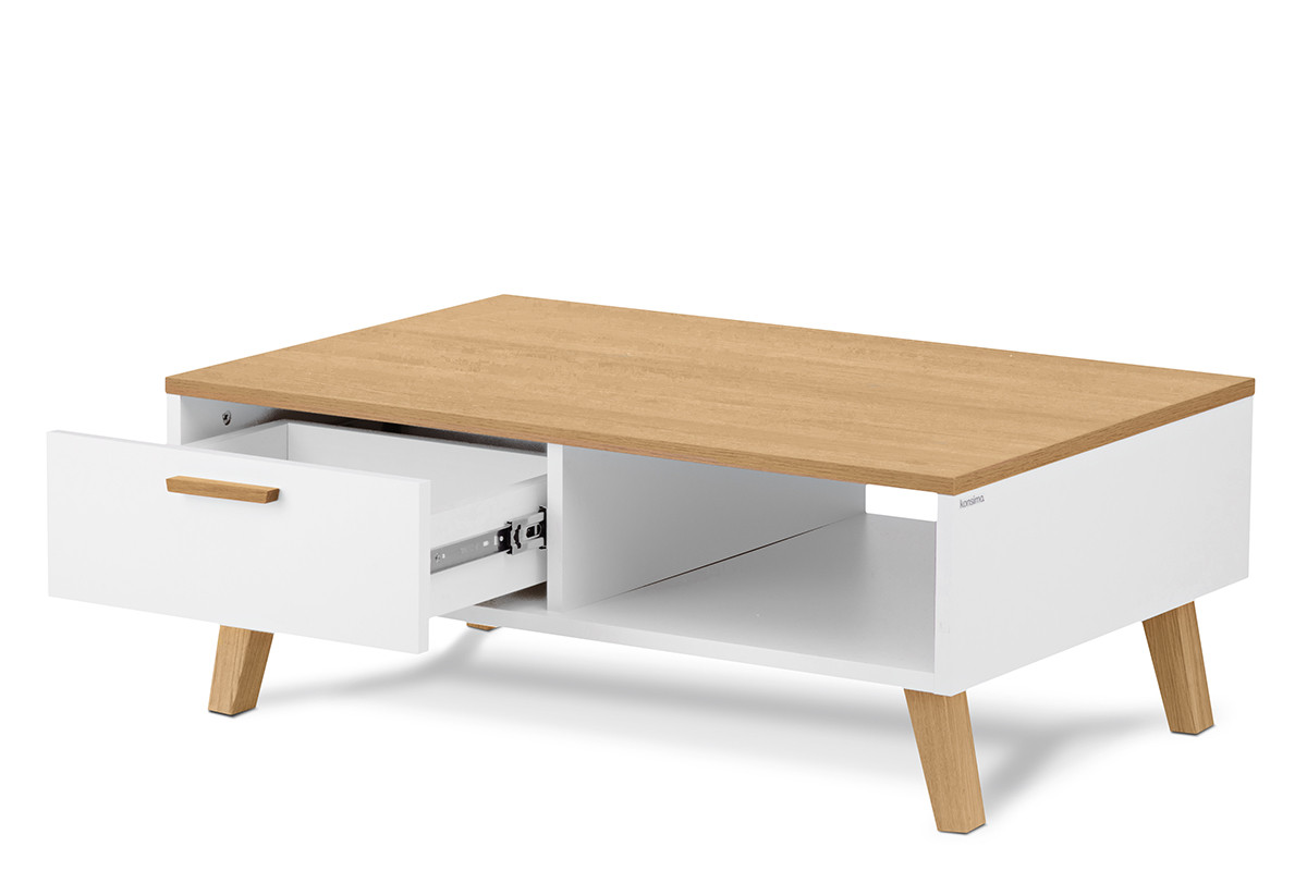 FRISK, https://dev1-mda.konsimo.pl/kolekcja/frisk/ Komoda + Szafka RTV + Stolik kawowy biały/dąb naturalny - zdjęcie