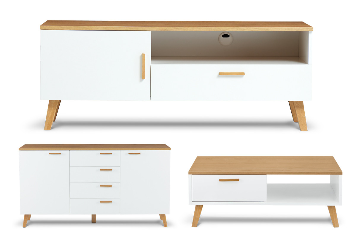 FRISK zobacz całą kolekcję Komoda + Szafka RTV + Stolik kawowy - kolor biały/dąb naturalny