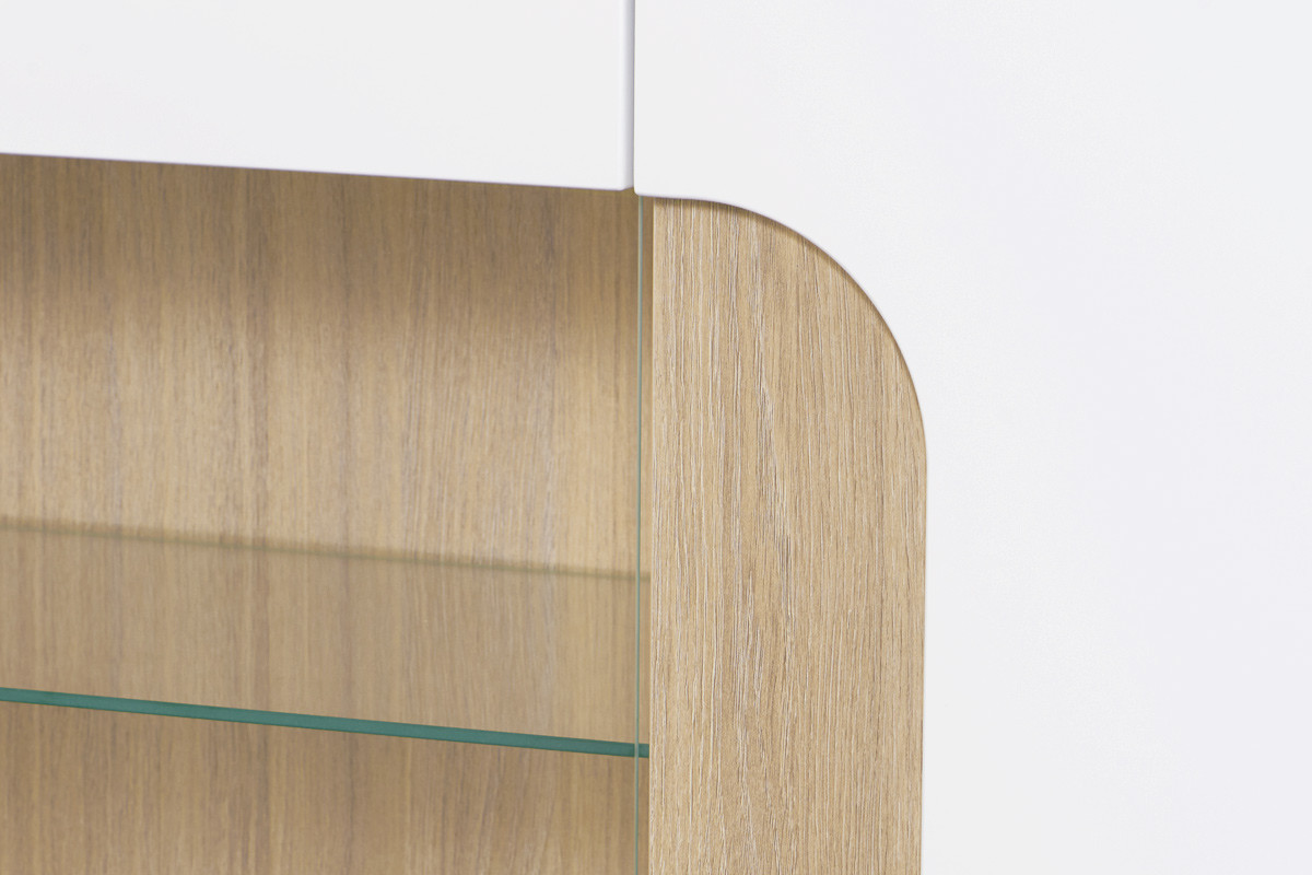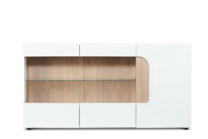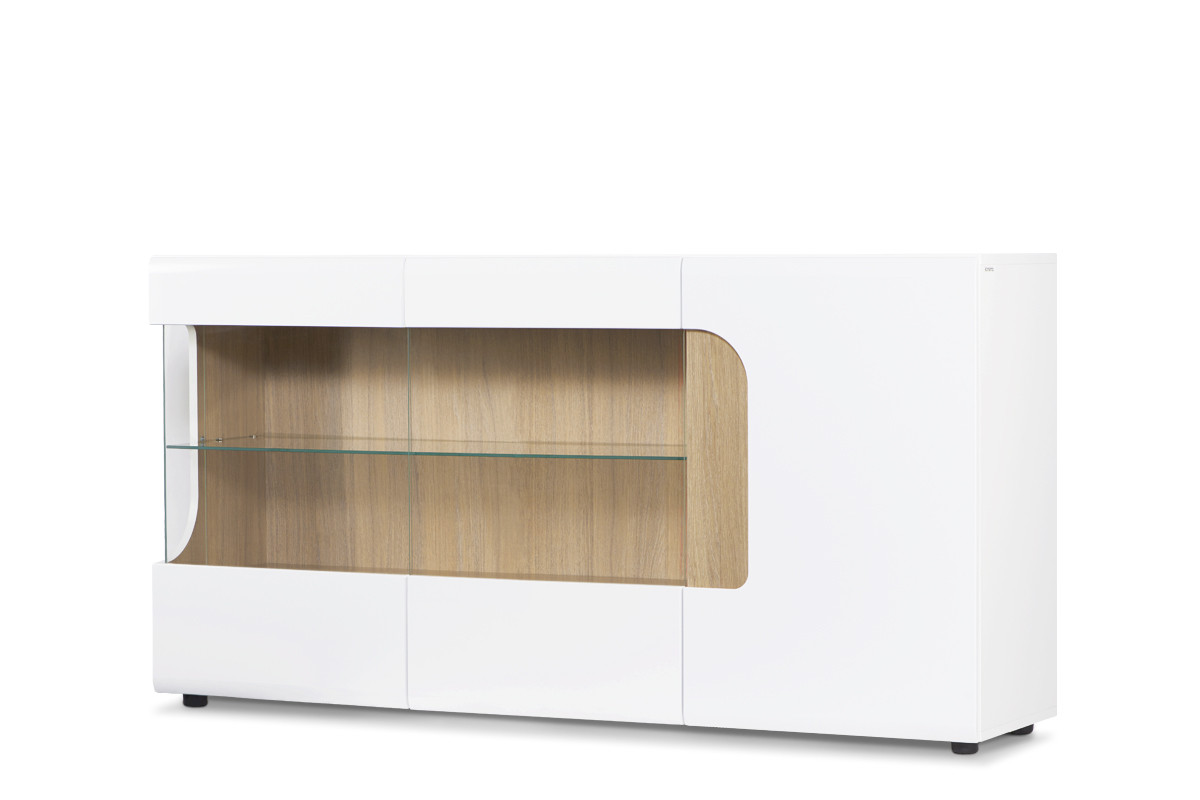 AVERO zobacz całą kolekcję Komoda z witryną - kolor biały matowy/biały połysk/dąb