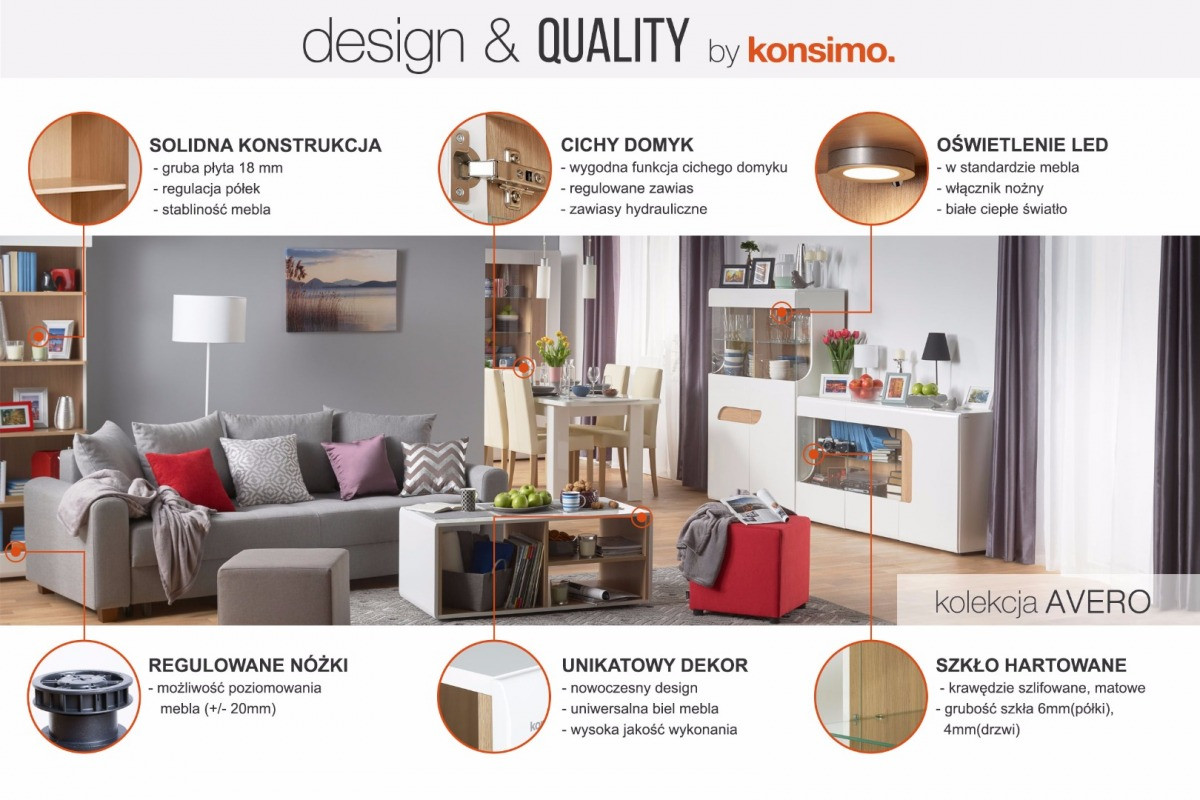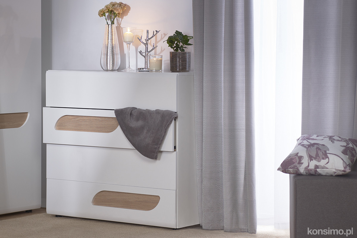 Piękna i nowoczesna komoda z kolekcji AVERO w stylu MODERN, to funkcjonalny mebel, który sprawdzi się zarówno w sypialni, jak salonie czy pokoju dziennym oraz gościnnym. Nowoczesny design oraz oryginalne frezowane wcięcia w szufladach podkreślają nowoczesny i modny charakter tej komody. Cztery pojemne szuflady sprawiają że jest to bardzo funkcjonalny mebel który sprawdzi się w każdym wnętrzu.