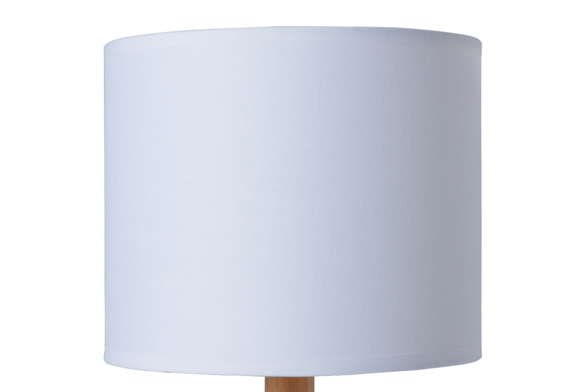 Podstawa lampy wykonana jest z drewna, klosz natomiast z tkaniny. Kontrast pomiędzy tymi dwoma elementami dodaje lampie elegancji i nowoczesności.
