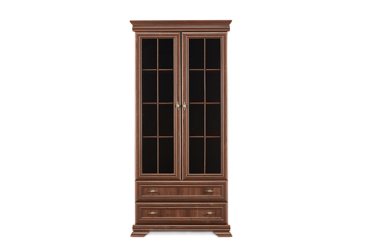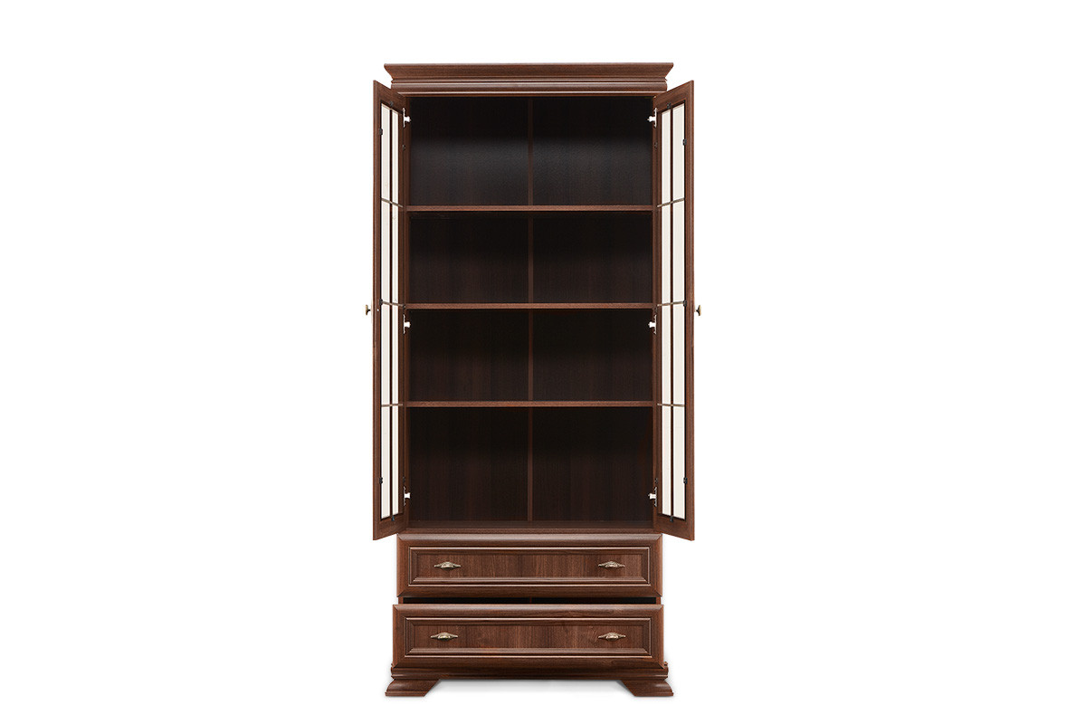 Szklana witryna do salonu orzech IMPERIO - kolor orzech