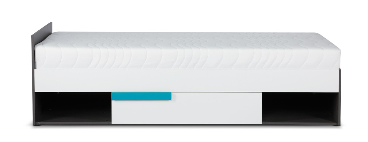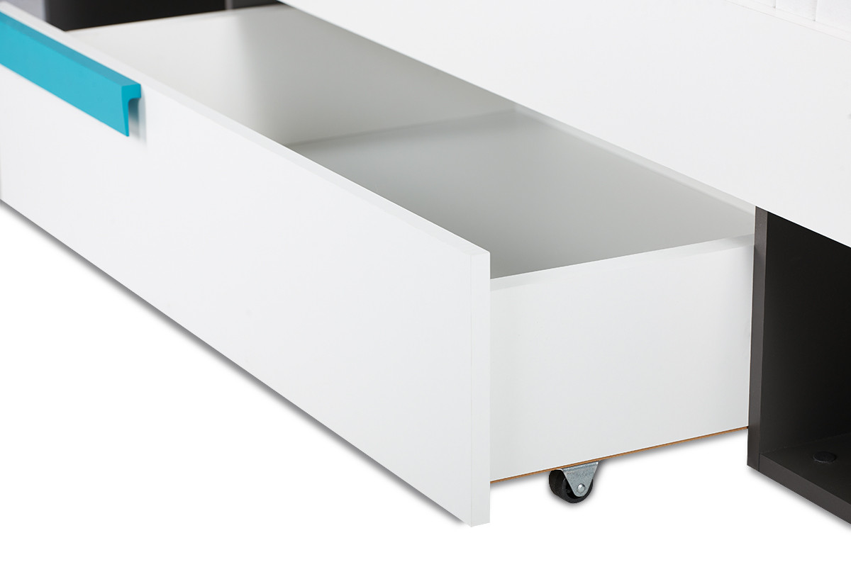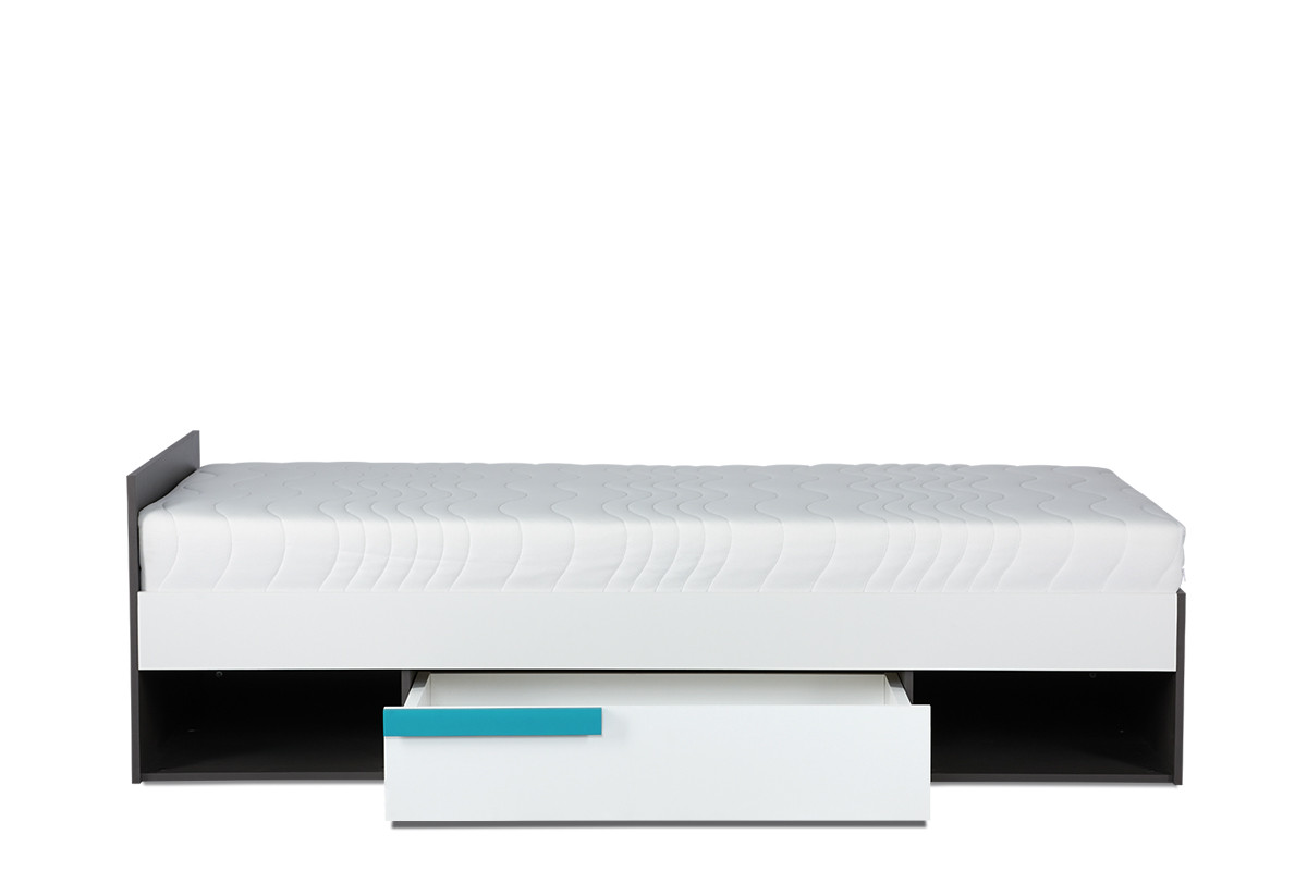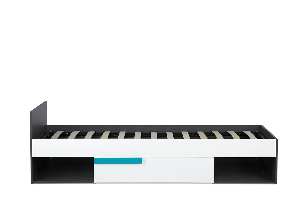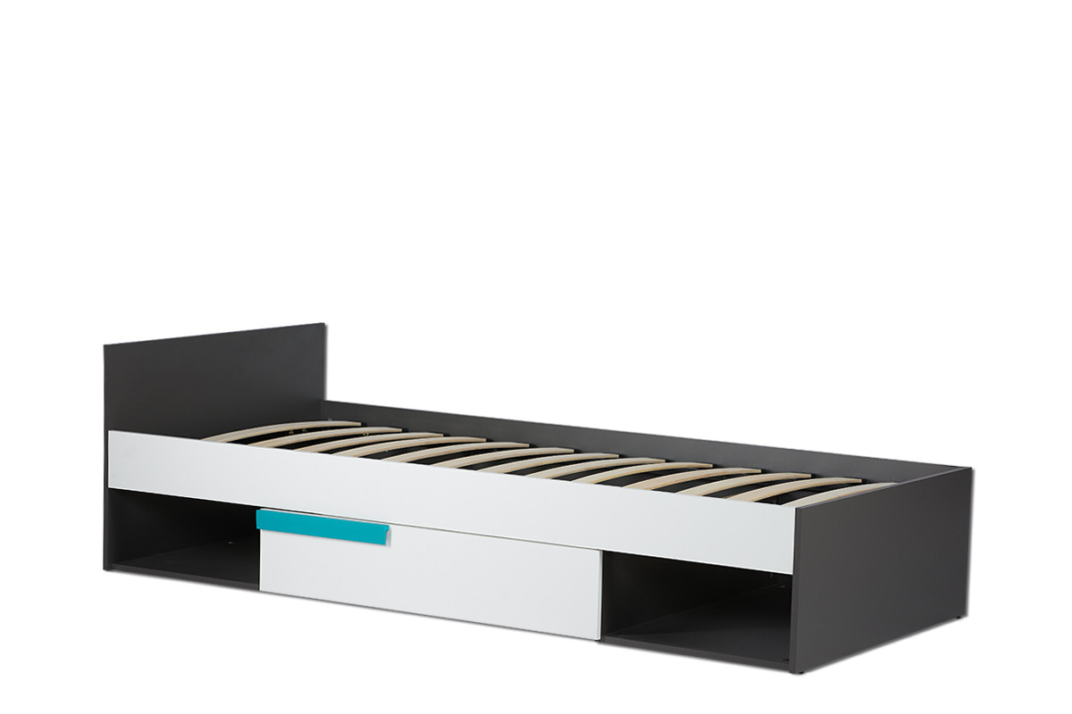 SHIBU zobacz całą kolekcję Nowoczesne łóżko dla dziecka z szufladą - kolor grafit/biały/niebieski
