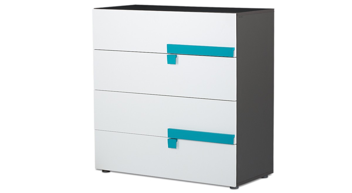 Potrzeba przestrzeni jest wspólna wszystkim ludziom – niezależnie od wielu. Wiedzą o tym projektanci komody młodzieżowej z kolekcji SHIBU – jednocześnie modnej i wyjątkowo praktycznej. Wyposażona została w cztery pojemne, wygodne szuflady, które pomieszczą mnóstwo ubrań, zabawek i innych dziecięcych oraz młodzieżowych akcesoriów. Komoda dla dzieci SHIBU o konstrukcji z wyjątkowo wytrzymałych materiałów, została dodatkowo wzmocniona specjalnym mocowaniem tylnej ścianki.