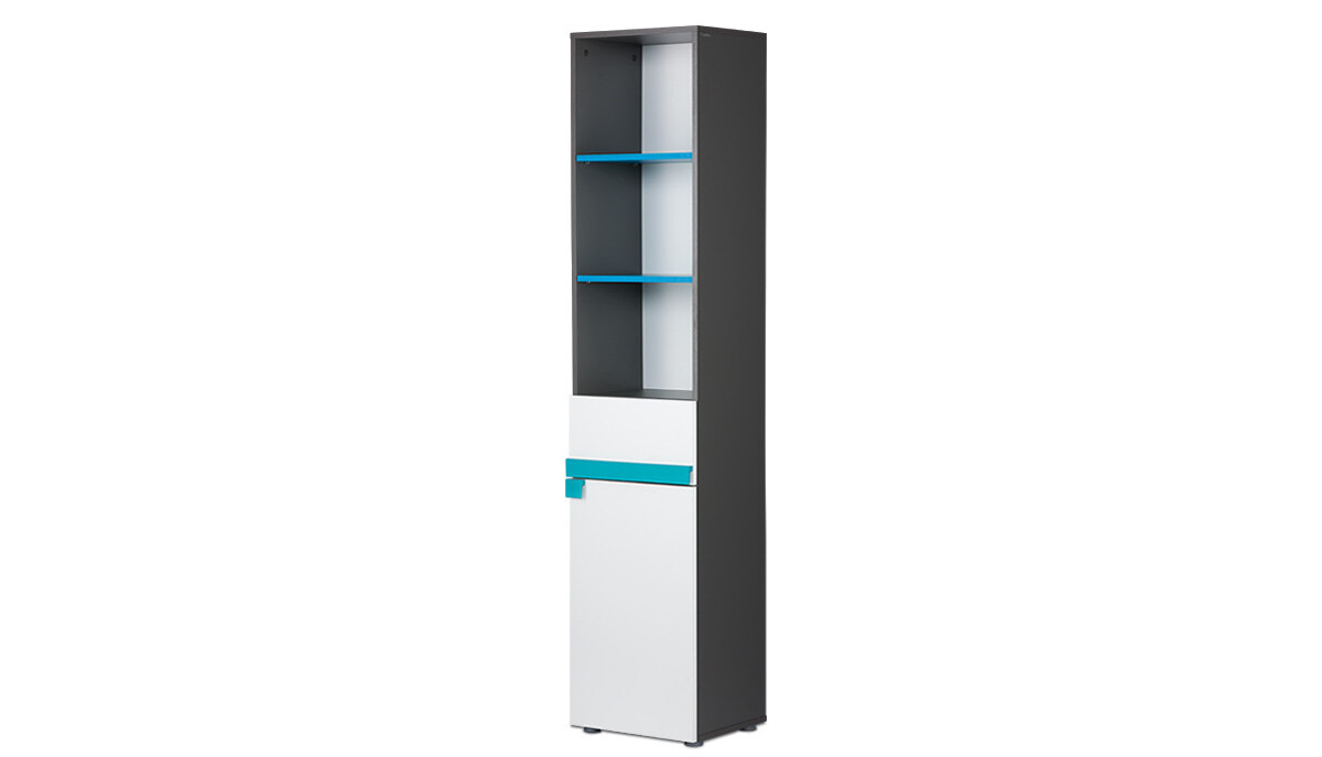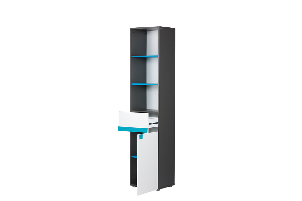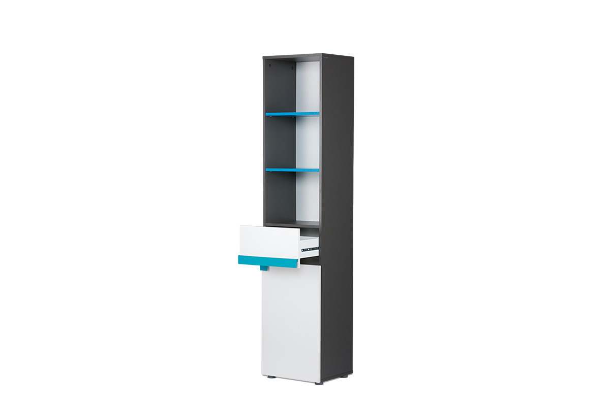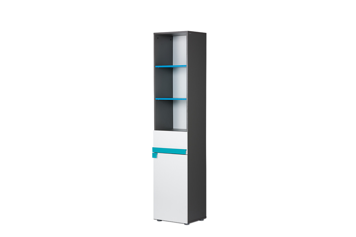 Wąski regał dla dziecka SHIBU - kolor grafit/biały/niebieski