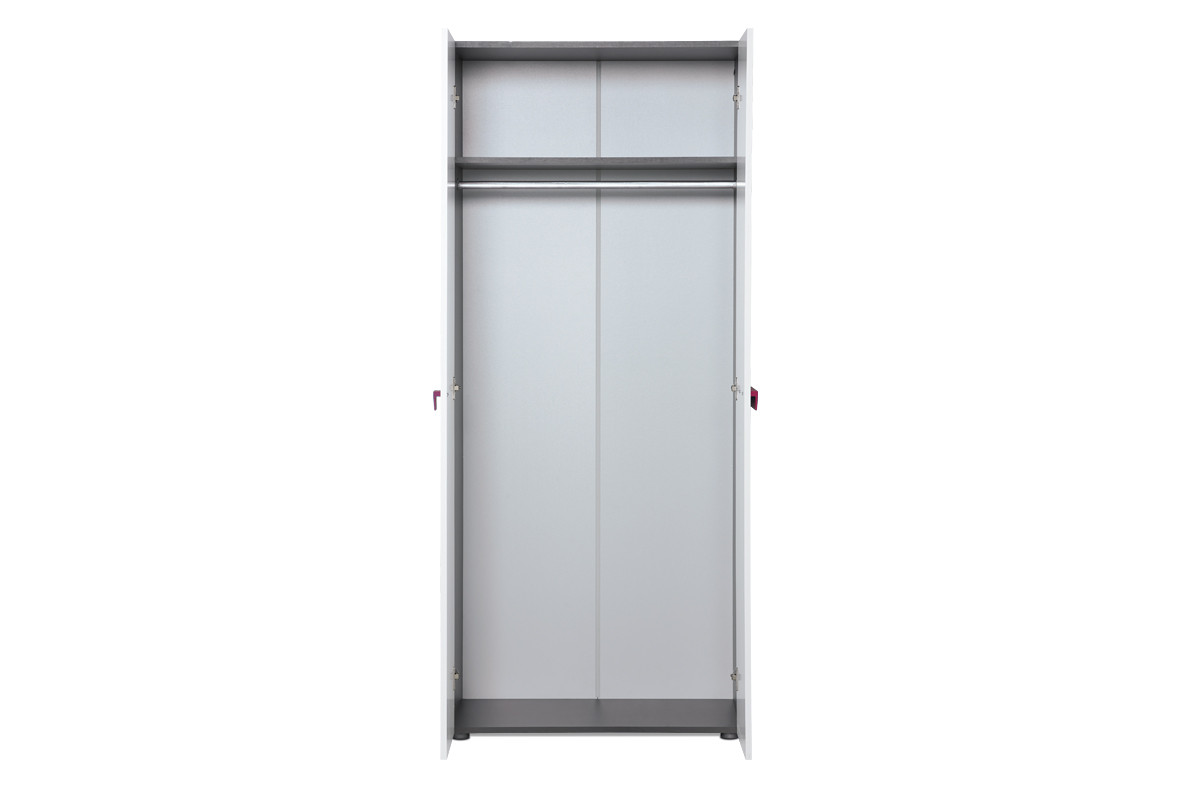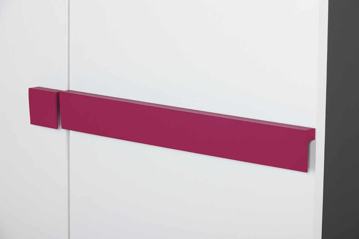 Szafa młodzieżowa SHIBU to połączenie modnego minimalizmu ze stylowym modernizmem. Neutralne kolory frontu i boków łamie tu wyłącznie jeden detal – designerski, a przy tym praktyczny uchwyt. Szafa dla dzieci i nastolatków SHIBU dostępna jest w dwóch wersjach kolorystycznych – z uchwytem fioletowym lub błękitnym. To właśnie detale dodają jej niebywałego uroku. Dzięki nim ta nowoczesna szafa stanowi nie tylko element funkcjonalny, ale też wspaniałą ozdobę wnętrza. Sprawdzi się w pokoju dziecka lub nastolatka, w biurze lub innym wnętrzu biznesowym, a nawet w hotelu.