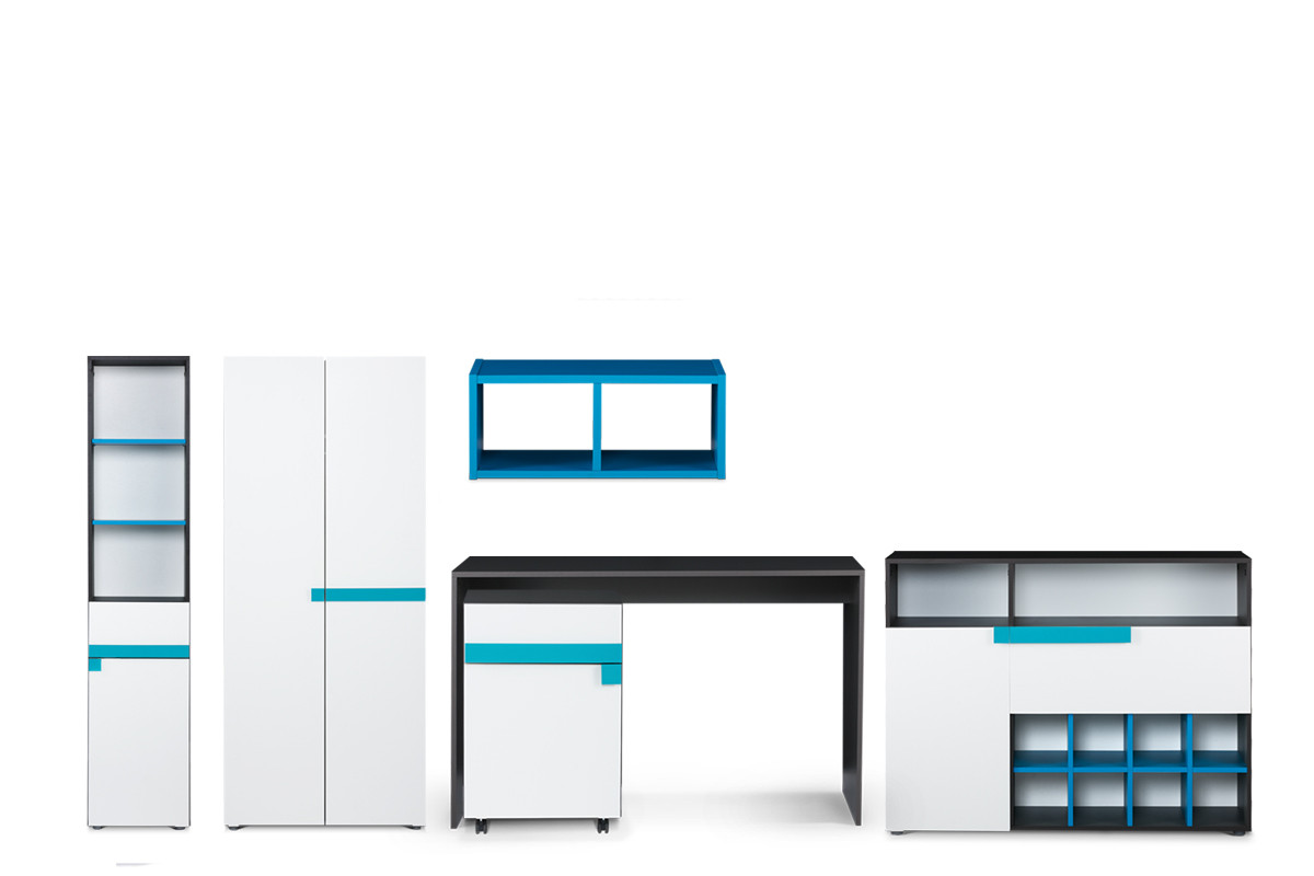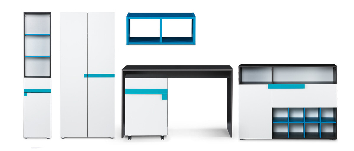 SHIBU zobacz całą kolekcję Zestaw meble do pokoju dziecka 6 elementów - kolor grafit/biały/niebieski