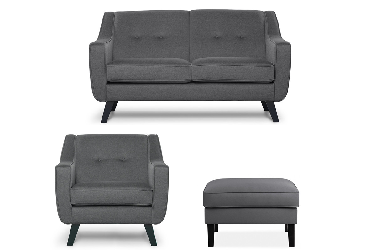 Konstrukcję sofy, fotela i pufa wspierają solidne nóżki z litego drewna. Dzięki optymalnym gabarytom, ten nowoczesny zestaw mebli sprawdzi się zarówno w przestronnym, jak i niewielkim salonie. Cenią go też właściciele restauracji, hoteli i miejsc publicznych.