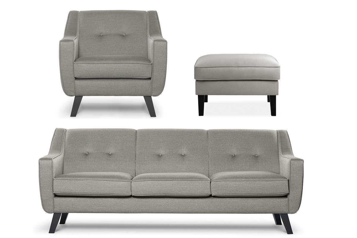 Trzyosobowa sofa, wygodny fotel i szeroki puf – komplet mebli tapicerowanych w stylu Elegant stanowi kompleksowe wyposażenie salonu lub pokoju dziennego. Jego jakość i luksusowy design cenią też właściciele hoteli czy restauracji. Zaprojektowany z myślą o ergonomii i wieloletnim, niezawodnym użytkowaniu, zestaw mebli tapicerowanych TERSO spełni oczekiwania nawet najbardziej wymagających klientów.