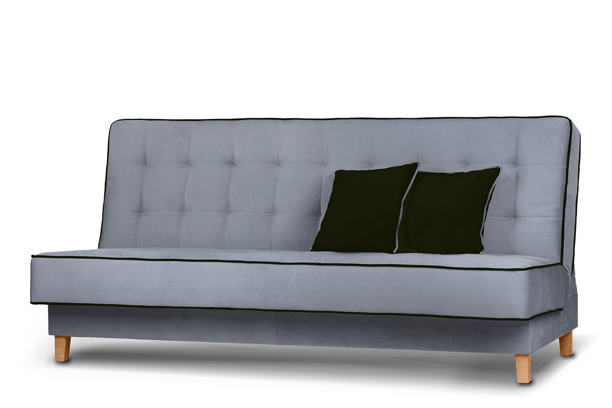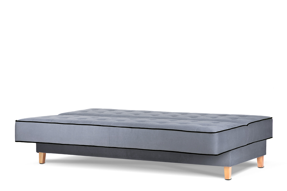 Świetnie sprawdza się jako kanapa do spania dla gości oraz podstawowe łóżko w mniejszych mieszkaniach, akademikach czy obiektach noclegowych. Wykonane z pianki wysokoelastycznej i sprężyny falistej siedzisko zapewnia komfort użytkowania i doskonały wypoczynek. Pojemnik na pościel wyposażony został w otwory wentylacyjne. Optymalne wymiary i brak boczków sprawiają, że ta nowoczesna rozkładana wersalka z powodzeniem mieści się nawet w niewielkich wnętrzach.
