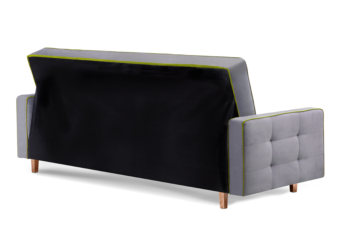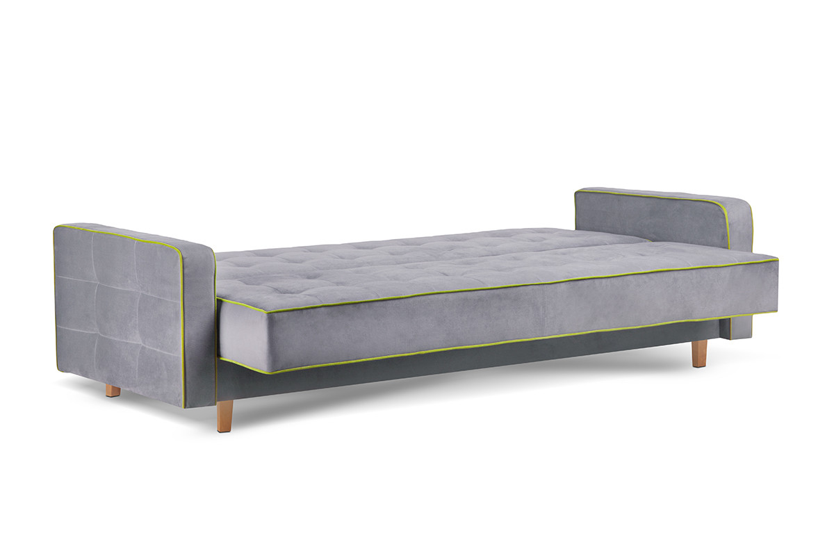 Niebywała prostota formy, ozdobiona jedynie stylowym pikowaniem, czyni kanapę DOZER idealną do nowoczesnych wnętrz. Dostępna w kilku modnych wariantach kolorystycznych, doskonale łączy uniwersalne barwy z designerskimi dodatkami – w tym wypadku są to ozdobne lamówki w intensywnych, odważnych kolorach. Takie połączenie wprowadza we wnętrzu pozytywny nastrój energii i działania. Konstrukcję solidnie wspierają, a zarazem subtelnie dekorują stylowe nóżki wykonane z litego drewna bukowego. Nowoczesna sofa rozkładana DOZER zachwyci osoby ceniące połączenie oryginalnej estetyki z funkcjonalnością.