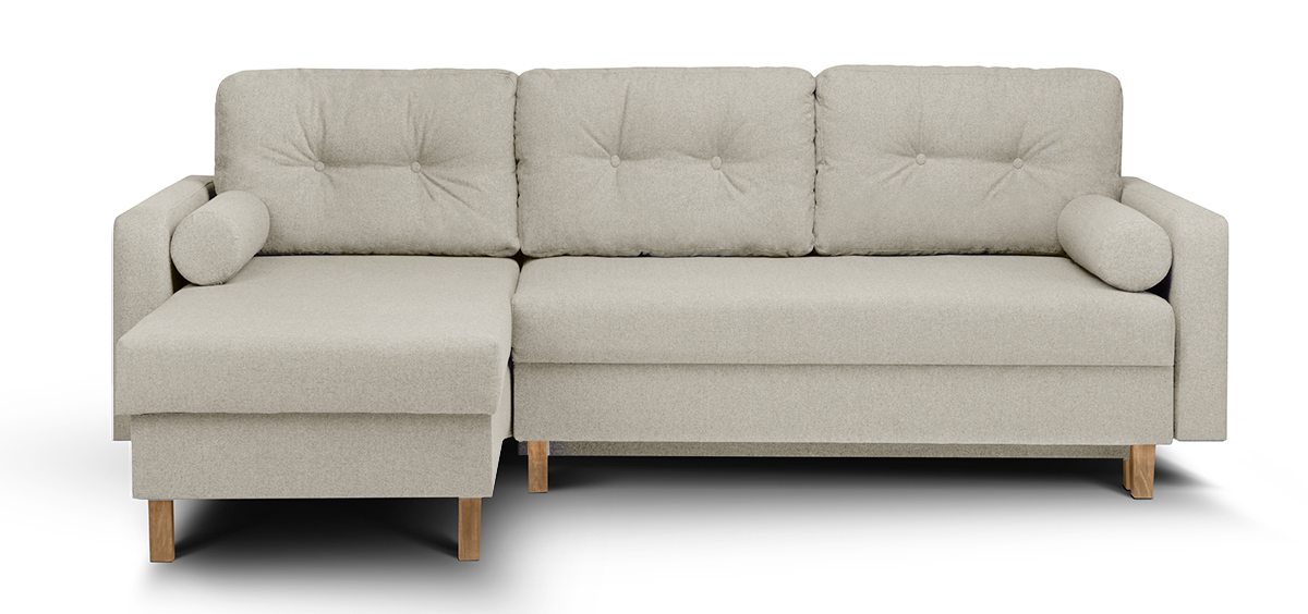 Wykonany z wysokiej klasy materiałów, o mocnej i stabilnej konstrukcji, narożnik z otomaną w skandynawskim stylu zapewni domownikom i gościom komfortowy wypoczynek. Wygodnie rozkładany dzięki automatycznemu mechanizmowi typu DL zapewnia przestrzeń do spania – to doskonałe rozwiązanie nie tylko dla gości. Świetnie sprawdza się też w niewielkich mieszkaniach, gdzie kanapa pełni funkcję łóżka.