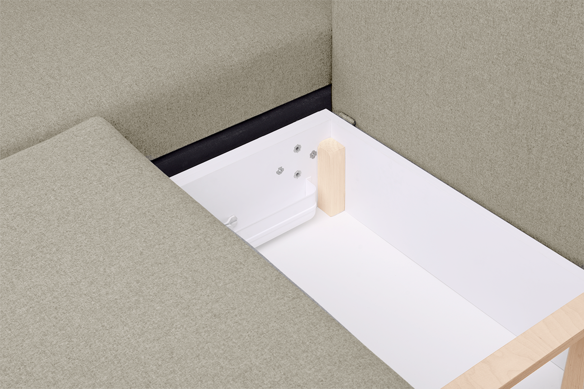 • Dodatkowe: chowane suwaki poduszek przy produkcji, dwa pojemniki na pościel, wywietrzniki w pojemniku na pościel