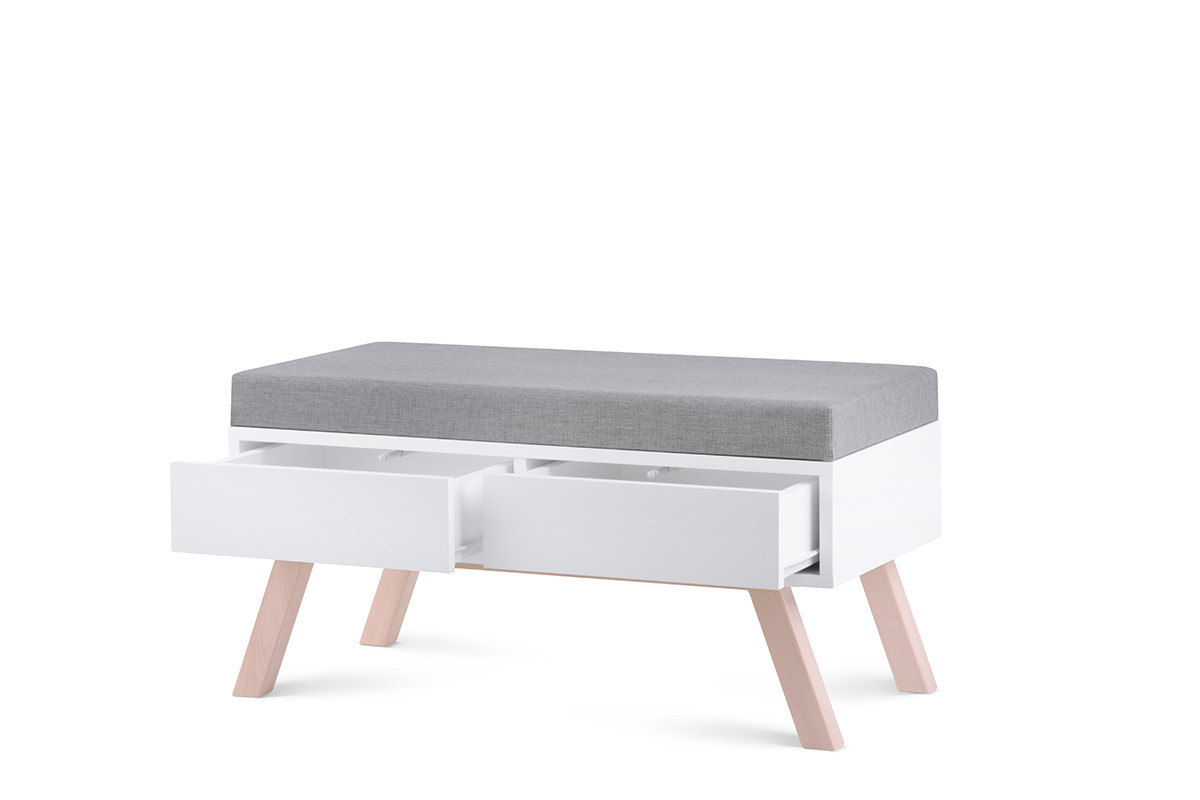 DINAVI zobacz całą kolekcję Stolik z siedziskiem - kolor biały matowy/buk olejowany/szary