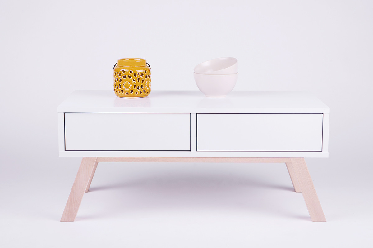 Stolik DINAVI to świetny wybór do modernistycznego wnętrza w stylu nawiązującym do krajów północy. Biały kolor i bukowe drewniane nóżki podkreślają jego nowoczesny Skandynawski design. DINAVI nie jest jednak tylko i wyłącznie zwykłym stolikiem. Dzięki znajdującej się w zestawie poduszce, łatwo można zamienić stolik w małą ławkę, co dodatkowo zwiększa jego funkcjonalność.
