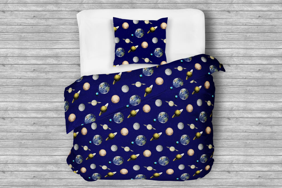 Piękny i przyjemny w dotyku Komplet Pościeli Dziecięcej z Kolekcji SIDUS. Oryginalny planetarny wzór pościeli i najwyższa jakość wykonania sprawia, że jest to doskonała propozycja do codziennego użytku. Wykonana w 100% z Bawełny pościel zapewni spokojny i komfortowy sen dziecka każdego dnia.Cały komplety wykonany został przy użyciu 144 nici. Oznacza to ilość nici użytych do wykonania jednego cala kwadratowego tkaniny.