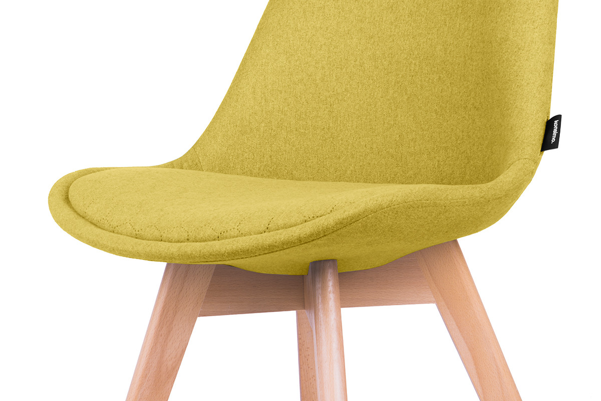 Nowoczesne, tapicerowane krzesło w stylu skandynawskim z kolekcji NETAL jest doskonałą propozycją do każdego typu wnętrza. Oryginalny design sprawdzi się zarówno w połączeniu z kuchennym stołem lub jako stylowy dodatek do salonu i pokoju dziennego. Przyjemna w dotyku tapicerka i miękka poduszka na siedzisku sprawiają, że krzesło jest bardzo wygodne i komfortowe. Nogi wykonane z litego drewna bukowego zapewniają wytrzymałość, stabilność podczas używania krzesła oraz podkreślają jego skandynawski styl.