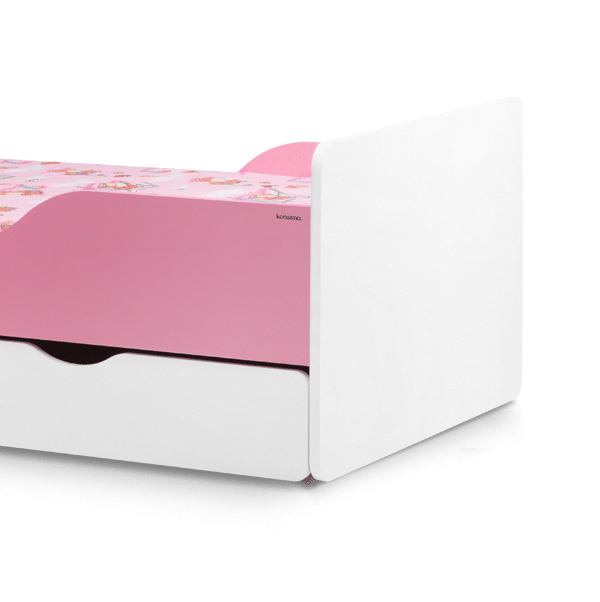 Odpowiednio wyprofilowane boki i zagłówek chronią dziecko przed upadkiem, nie psując przy tym stylowego wyglądu łóżka dziecięcego z materacem. Optymalne wymiary sprawiają, iż rozwiązanie to sprawdzi się zarówno u maluszków, jak i starszych dzieci.