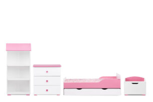 PABIS zobacz całą kolekcję Zestaw meble do pokoju dziewczynki różowe 4 elementy - kolor biały/różowy