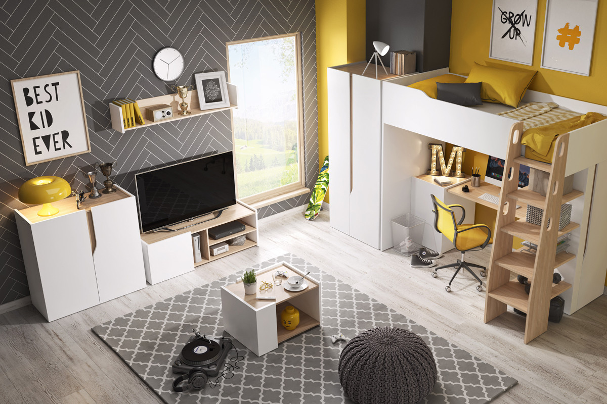 RIMA zobacz całą kolekcję Łóżko piętrowe - kolor biały/dąb